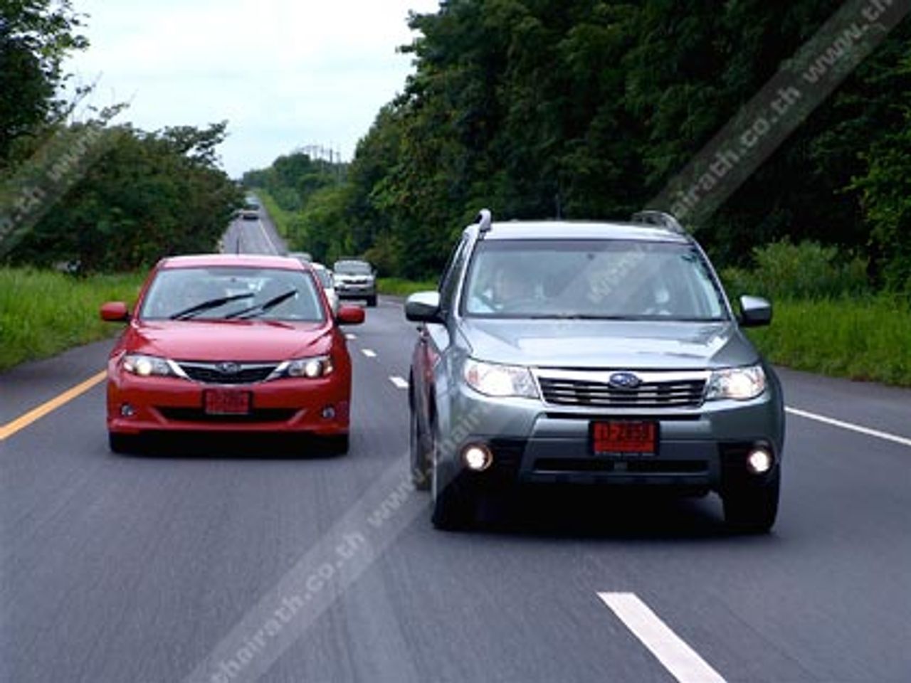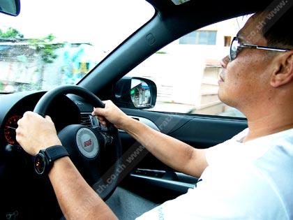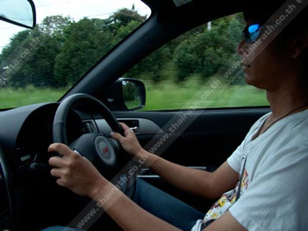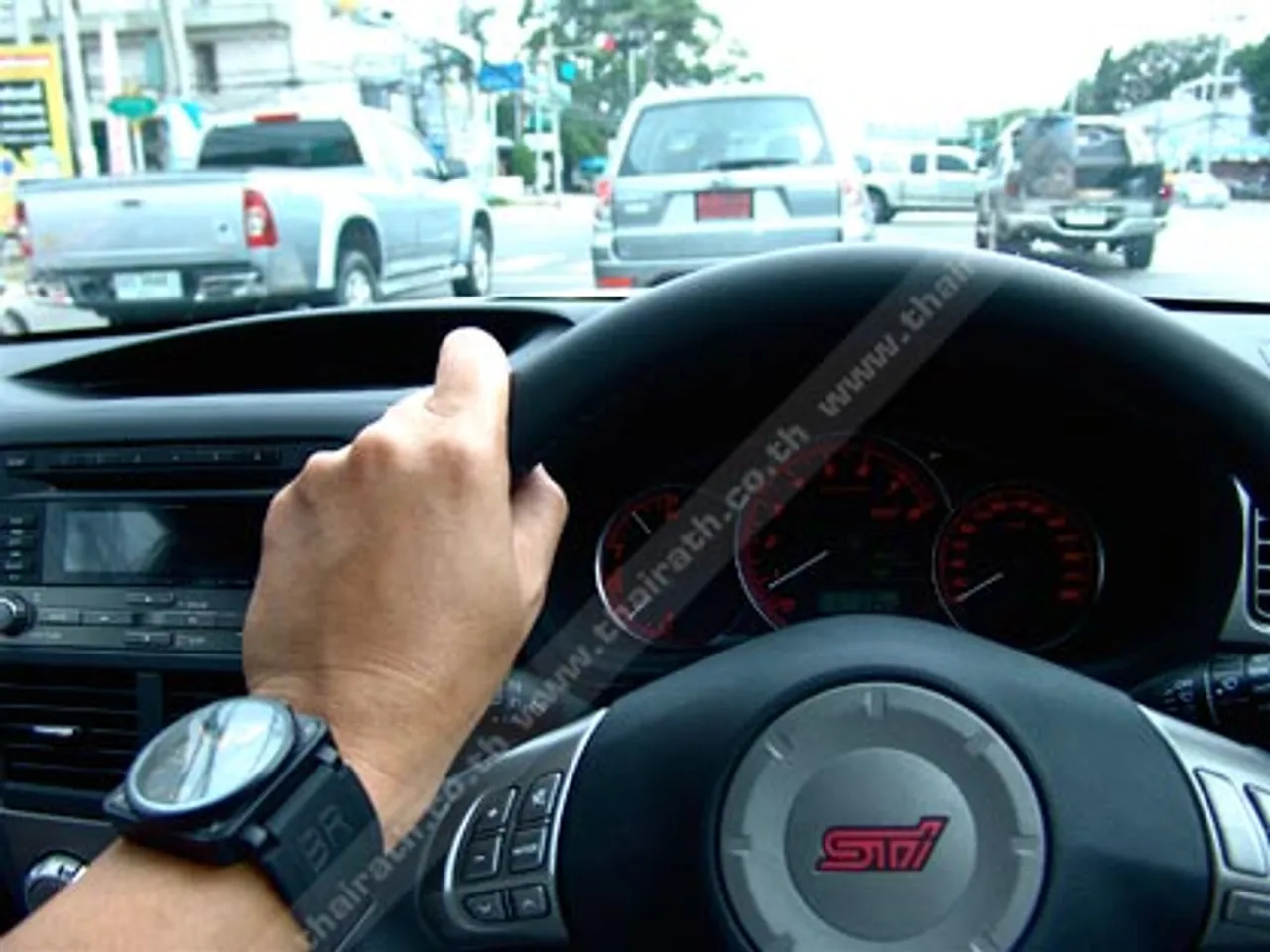 กว่าขบวนรถทดสอบทั้ง 6 คัน รวมรถของเจ้าหน้าที่ทีมพีอาร์ของ Motorimage อีกหนึ่งคันรวมเป็น 7 คันจะหลุดจากสภาพการจราจรที่คับคั่งของถนนสุวิทวงศ์ ก็ปาเข้าไปกว่า 11.20 น. บนถนนเส้นพนัสนิคม-แกลง เป็นเส้นทาง 2 เลนสวนที่ต้องใช้ความระมัดระวังมากเป็นพิเศษ เนื่องจากไหล่ทางคับแคบและมีรถบรรทุก 10 ล้อ วิ่งกันเต็มถนน การแซงจึงต้องเพิ่มความระวังมากยิ่งขึ้น Kingsley Wijayasinha ปรับโหมดการขับขี่ของเจ้า Subaru Impreza WRX STi ไปที่โหมด Sport ซึ่งเป็นโหมดปกติของการขับขี่ พลังจากม้าทั้ง 300 ตัวที่เกิดจากการเสกเป่าของเทอร์โบเดี่ยวแบบ High Boost Turbocharged ที่เริ่มถ่ายเทแรงบิดระดับ 407 นิวตันเมตรลงไปยังล้อทั้ง 4 กลไกขับเคลื่อน 4 ล้อตลอดเวลา Symmetrical All-Wheel Drive System ที่ประสานไปกับระบบส่งกำลังแบบ Mannul 6 อัตราทดชิด บนการรองรับของคลัตช์ที่ถูกออกแบบโดยวิศวกรของ Subaru ให้มีความแข็งแกร่งทนทานจากการรับกำลังแรงบิดของเครื่องยนต์