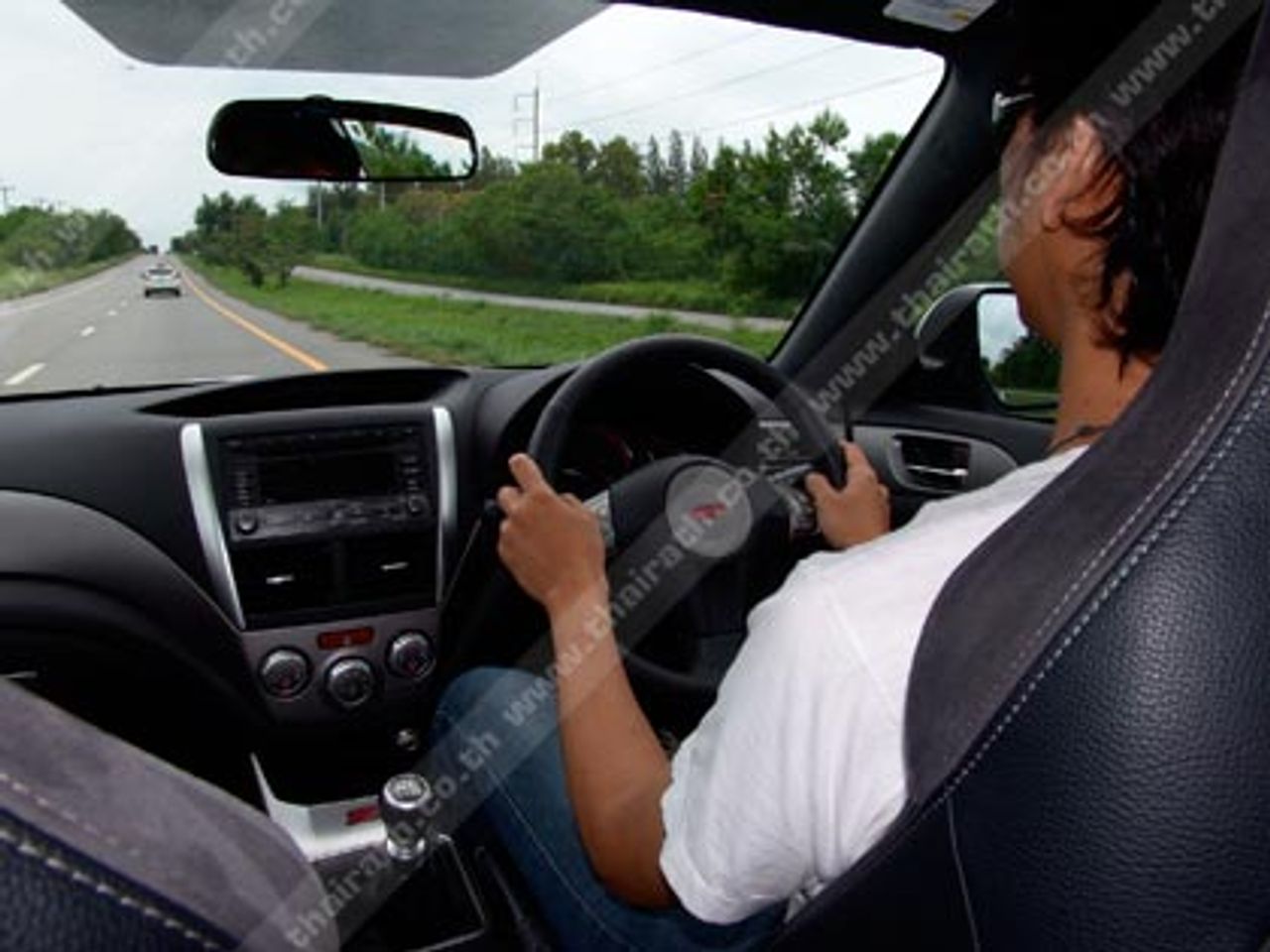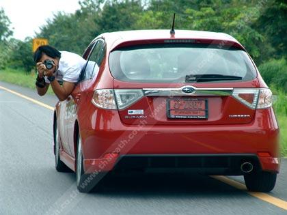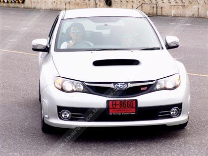 ผมเข้ามารับช่วงต่อจาก Kingsley Wijayasinha ที่เริ่มจะเมื่อยล้าและหมดแรงจากการควบเจ้า Subaru Impreza WRX STi หลังจากคณะแวะรับประทานอาหารกลางวันกันแถวชายทะเลในจังหวัดระยอง ขบวนรถทดสอบ Subaru เริ่มเคลื่อนตัวออกเดินทางต่อเพื่อมุ่งหน้าไปยังฐานทัพเรือในอำเภอสัตหีบ ที่ความเร็วต่ำผมพยายามทำความรู้จักกับเจ้าแมวจอมดุคันนี้ ก่อนที่จะค่อยๆ เติมคันเร่งแบบค่อยเป็นค่อยไป ระบบส่งกำลังซึ่งวิศวกรของ Subaru วางเกียร์ธรรมดา 6 สปีด กับคลัตช์ที่มีน้ำหนักพอประมาณทำให้การขับ Impreza WRX STi ได้รสชาติและอารมณ์ที่แปลกและแตกต่างอย่างสิ้นเชิงจากที่เคยทดสอบรถหรูราคา แพง ตำแหน่งของเครื่องยนต์สูบนอนอยู่ในระดับต่ำมากกว่าปกติ เกิดจากการจงใจในการออกแบบเพื่อลดค่า CG ซึ่งทำให้ตัวรถมีความเสถียร ความมันส์ของการยัดเกียร์ขึ้น-ลงด้วยตัวเองโดยใช้สมองของผมแทนกล่อง ECU ที่ควบคุมตำแหน่งเกียร์แบบรถเกียร์ออโต้ทั่วๆไป กับความรู้สึกถึงกลไกจุดยึดที่หนักแน่นของช่วงล่างและชุดบังคับเลี้ยวที่ เป็นแบบเพาเวอร์สายพาน เปรียบได้กับนักกีฬาที่กำลังใช้อุปกรณ์เพื่อทำความเร็ว คุณต้องออกแรงกับมันพอสมควรเลยทีเดียวในการควบคุมเจ้านี่ที่ความเร็วสูง ประสาทสัมผัสทั้งหมดถูกทุ่มเทให้กับความไวของตัวรถและสภาพเส้นทางชนิดห้ามวอกแวกอย่างเด็ดขาด