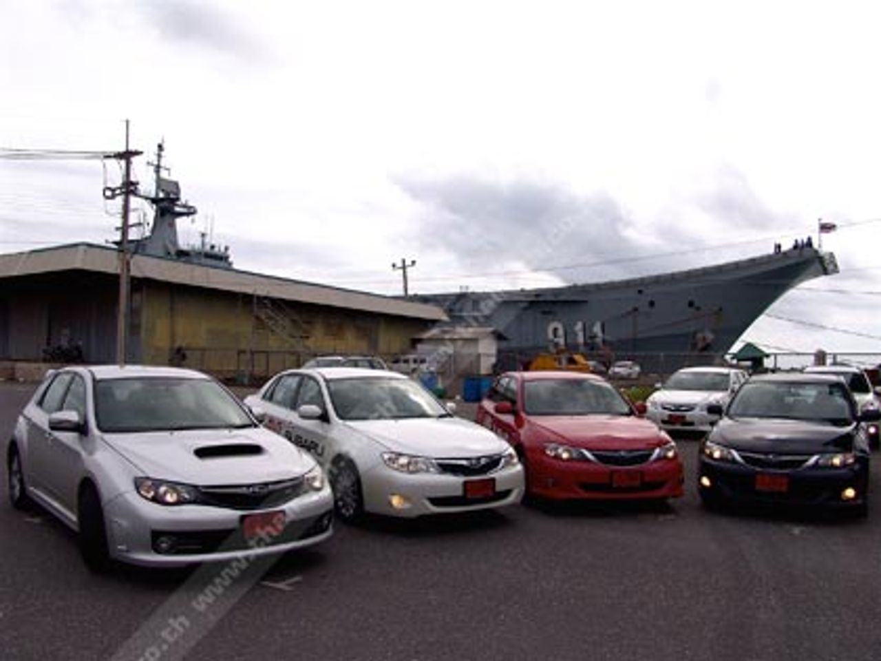 กล้าใส่มันให้หนักในโค้งอย่างที่ Kingsley Wijayasinha นักข่าวของ The Nation ลองกระทำกับตัวรถในการทดสอบช่วงเช้า แต่ต้องเป็นความเร็วที่เหมาะสมเท่านั้น ซึ่งทำให้ผมสามารถรับรู้ได้ถึงความหนึบของช่วงล่างด้านหน้า ทันทีที่รถเริ่มเคลื่อนตัวเข้าสู่หัวโค้งกับการลดระดับความเร็วลงไปในย่านความเร็วที่มีความเหมาะสมกับรูปแบบของโค้ง กับแรงบิด 407 นิวตันเมตรบนเรือนร่างที่หนักแค่ 1.5 ตัน พร้อมกับกดคันเร่งจนสุดตรงปลายทางโค้งก่อนออกสู่ทางตรง แรงเหวี่ยงหนีศูนย์กลางที่สำแดงออกมาแทบไม่แตกต่างไปจากการนั่งรถไฟเหาะ แม้แต่น้อย ด้วยวิธีนี้ผมสามารถรับรู้ได้ถึงท้ายรถกำลังตีวง ก่อนที่ด้านหน้าของเจ้าแมวปิศาจจะดึงตัวรถออกจากโค้งแบบกวาดทีเดียวจบ จากท้ายที่สั้นกุดบนรูปแบบแฮตซ์แบคที่ออกแบบให้ดริฟโค้งได้ดีและรวดเร็วกว่าซีดาน ตามมาด้วยความตื่นเต้นกับความล้าที่ต้องกุมพวงมาลัยเพื่อคอนโทรลทิศทางรวม ถึงมือซ้ายที่ต้องยัดเกียร์ขึ้น-ลงให้เหมาะสมกับสปีดในช่วงนั้น บ่าย 4 โมงเย็น ขบวนรถทดสอบ Subaru ทั้ง 7 คันก็จอดพักเพื่อถ่ายรูปร่วมกันในบริเวณอู่จอดเรือน้ำลึกของฐานทัพเรือ สัตหีบ ตามมาด้วยความมันส์เล็กๆเมื่อ Kingsley นำเจ้าแมว WRX STi ออกไปทำการดริฟโชว์เพื่อเรียกเสียงฮือฮาจากเพื่อนๆสื่อมวลชนจนมีบางท่านถึง กับตั้งสมญานามให้ว่า Kingblock