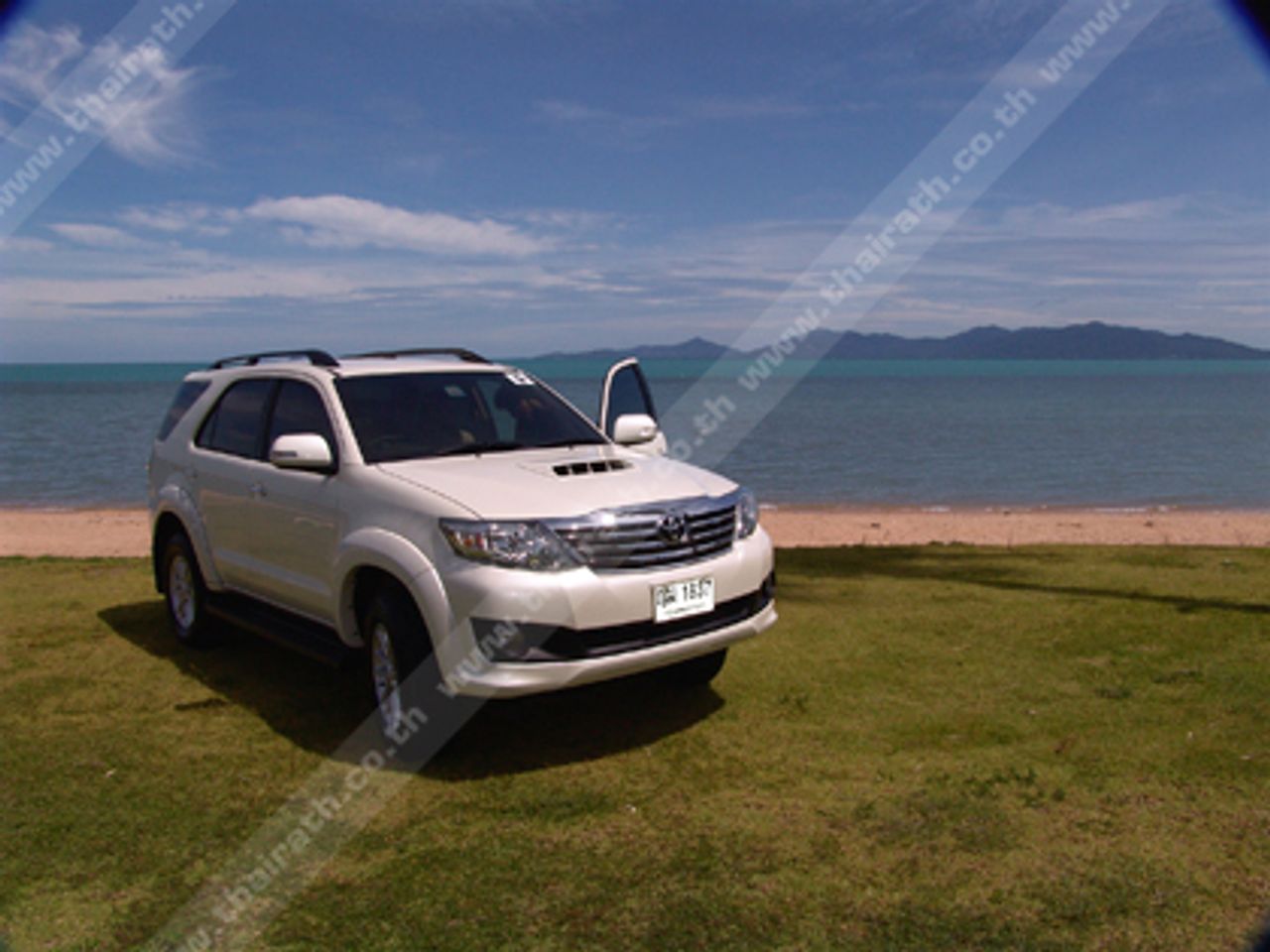 พลพรรคสื่อมวลชนกับทีมพีอาร์ของ Toyota นำรถทดสอบ New Fortuner มาถึงยังท่าเรือเฟอร์รี่สมุยประมาณ 15.30 น. หลังจากรอเรือออกจากท่าอีก 1 ชั่วโมงและลอยอยู่ในทะเลอีกกว่า 1 ชั่วโมง ก็มาถึงยังหมู่เกาะที่กลายเป็นที่นิยมของฝรั่งนักท่องเที่ยวเอาเกือบ 6 โมงเย็น บนตัวเกาะกับเส้นทางที่คับแคบเต็มไปด้วยรถปิกอัพ จักรยานยนต์และคนเดินเท้าทำให้ต้องคลานกันมาตลอดทางจากท่าเทียบเรือเฟอร์รี่ ไปจนถึงโรงแรม หลังจากเช็กอินห้องพัก ผมออกไปเดินทอดน่องยังแนวชายหาดที่สงบเงียบของอ่าวเฉวงในช่วงใกล้ค่ำพลางคิดคำนึงถึงการขับขี่ตลอดเส้นทางทดสอบตั้งแต่เช้าจรดเย็น รถ Toyota New Fortuner 3.0 ดีเซลให้ความคาดหวังสำหรับการใช้งานในระดับที่ดี รูปลักษณ์ที่ถูกปรับปรุงให้ดูคล้ายรถเก๋งที่ด้านหน้าสร้างความแปลกใหม่ในมุม มองที่แตกต่างไปจากเดิม อุปกรณ์ต่างๆที่ให้มาใช้งานได้จริงและมีความเหมาะสมกับรูปแบบ SUV ของมัน