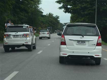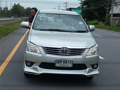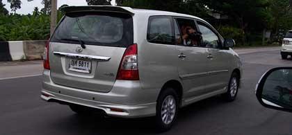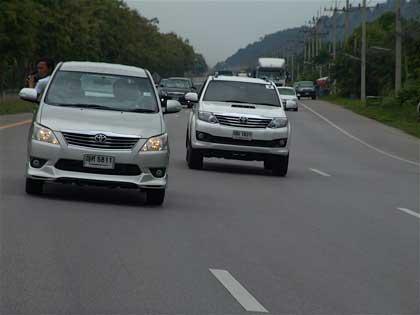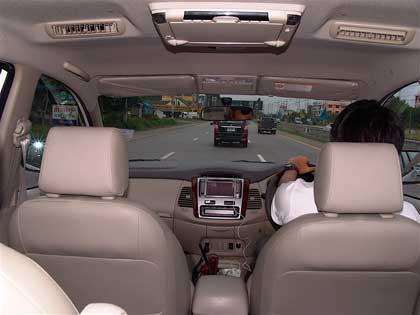ขบวนทดสอบ Innova Minor Change มาถึงจุดแวะพักเพื่อเปลี่ยนคนขับ น้องอาร์ตจากสยามธุรกิจเข้ามารับหน้าที่ควบคุมตัวรถไปจนถึงอำเภอปราณบุรี โดยใช้เส้นทางบายพาส เลี้ยวขวาอีกครั้งเข้าถนนบายพาส ถนนเส้นนี้จะไม่ผ่านชะอำและหัวหินซึ่งจะประหยัดเวลาได้ประมาณ 30 นาที เมื่อสุดถนนบายพาสแล้วเลี้ยวขวาอีกครั้งหนึ่งก็จะเข้าสู่ อ.ปราณบุรี บนถนนเส้นบายพาส อาร์ตใช้ความเร็วสูงขึ้นมาอีกนิดจากที่ผมเคยวิ่งแบบย่องๆที่ 100-120 กิโลเมตรต่อชั่วโมงจนโดนทิ้งมาเป็นที่ระดับ 130-140 กิโลเมตรต่อชั่วโมง บางช่วงทีมพีอาร์ของ Toyota ต้องการถ่ายภาพการวิ่งเกาะกันไปเป็นแถวของ Innova Minor Change ความเร็วในช่วงนั้นจะหล่นมาเหลือแค่ 70-90 กิโลเมตรต่อชั่วโมงเพื่อไม่ก่อให้เกิดอันตรายกับตากล้องทั้งภาพนิ่งหรือพวก ที่กำลังบันทึกเทปโทรทัศน์ บนตำแหน่งเบาะนั่งแถวที่สองของ Innova Minor Change มันให้ความสบายและมีอารมณ์ร่วมไปการเดินทางแบบท่องเที่ยวพักผ่อนบนตัวรถที่ ทำขึ้นมาสำหรับครอบครัวจากระบบรองรับที่ปรับเซตมาเพื่อเน้นความนุ่มนวลมาก ขึ้น กับเสียงเพลงจากเครื่องเล่น WMA และวิวทิวทัศน์สองข้างทางทำให้ผมเพลิดเพลินจนมาถึงร้านกาแฟในอำเภอปราณบุรี เอาเมื่อเวลาใกล้ 3 โมงเย็น