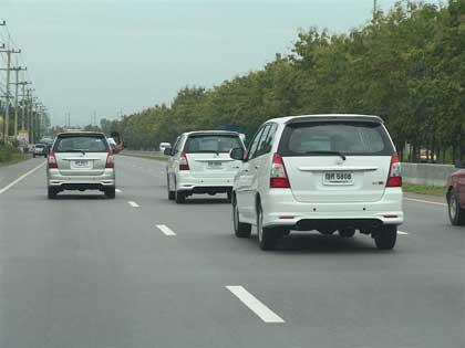 เส้นทางหลังจากผ่านแยกวังมะนาวมาได้เล็กน้อยเริ่มใช้ความเร็วเพิ่มขึ้น ที่ระดับ 140 กิโลเมตรต่อชั่วโมงรถ Innova Minor Change ยังคงทรงตัวบนทางตรงได้ดี แต่การเปลี่ยนเลนแบบกะทันหันที่ย่านความเร็วสูงผมไม่แนะนำให้กระทำบนเจ้า Innova ดังที่กล่าวมาแล้วว่าความสูงของตัวรถกับการปรับเซตช่วงล่างใหม่ที่ออกไปใน แนวทางนุ่มนวลมากกว่ารุ่นเดิม ที่ความเร็วสูงๆจึงควรใช้ความระมัดระวังในการควบคุมมากยิ่งขึ้น ทั้งการขับเข้าสู่ทางโค้งหรือเลี้ยวเปลี่ยนเลน ความเร็วของตัวรถจึงควรอยู่ในระดับที่พอเหมาะพอควร พวกที่ชอบรถเร็วๆ มีอัตราเร่งดีๆน่าจะมองข้ามมันไปได้เลย แต่สำหรับครอบครัวขนาดกลางที่ต้องการพื้นที่ของห้องโดยสารกว้างขวาง และนิยมขับขี่แบบไปเรื่อยๆไม่เน้นเรียกกำลังเครื่องกันบ่อยๆ แล้ว เจ้า Innova Minor Change ดูจะเหมาะสมมากที่สุด