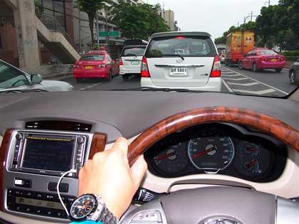 ช่วงล่างที่ถูกปรับแก้ให้มีสมรรถนะที่ดีขึ้นทำให้การขับขี่เจ้า Innova Minor Change ในเมืองใหญ่อย่างกรุงเทพมหานครเป็นไปแบบง่ายๆ สบายๆ ที่ความเร็วต่ำในเมือง การขับเจ้า Innova Minor Change แทบจะไม่มีความแตกต่างไปจากรถซีดานทั่วไป แต่ตำแหน่งของเบาะนั่งที่สูงลิบ ทำให้ผมรู้สึกแปลกๆไปบ้าง จากที่เคยชอบปรับเบาะรถทดสอบเกือบทุกคันให้ลงต่ำแบบสุดๆ พอมาอยู่ในห้องโดยสารของ Innova Minor Change ที่สูงโด่ง มันจึงมีมุมมองที่กว้างไกลกว่า มองได้ชัดเจนและสามารถกะระยะได้ดีขึ้น ส่วนการทรงตัวบนทางด่วนที่ระดับความเร็วประมาณ 100-120 กิโลเมตรต่อชั่วโมง มีความคล้ายคลึงกับโมเดลรถเก๋งขนาดกลางของค่ายสามห่วง การเปลี่ยนเลนที่ความเร็วไม่สูงมากนักทำได้ดี ระยะเบรกอยู่ในระดับปกติถึงแม้จะใช้ดรัมเบรกที่ล้อคู่หลังแต่ไม่สร้างปัญหา อย่างใดทั้งสิ้นหากไม่ขับจี้ท้ายรถคันหน้าในระยะกระชั้นชิด อัตราเร่งแซงคงต้องเผื่อระยะกันพอสมควร เนื่องจากเครื่องยนต์ 1TR-FE 2.0 ลิตร เน้นแรงบิดในระดับปานกลาง ไม่กระโชกโฮกฮากซึ่งควรขับขี่มันแบบเรื่อยๆ มาเรียงๆ และจะเหมาะมากสำหรับเจ้าของรถที่พาครอบครัวออกเดินทางไกลเพื่อท่องเที่ยว ซึ่งในรถอาจมีเด็กเล็กร่วมทางไปด้วย การใช้ความเร็วสูงจึงไม่เหมาะกับเจ้า Innova Minor Change ด้วยประการทั้งปวง ทั้งจากความสูงของตัวรถ มวลน้ำหนักและการปรับเซตช่วงล่างมาจากโรงงานที่เน้นให้ขับแบบไปเรื่อยๆ มากกว่าจะเอามากดแช่ลากรอบเครื่องกันอยู่ตลอดเวลา