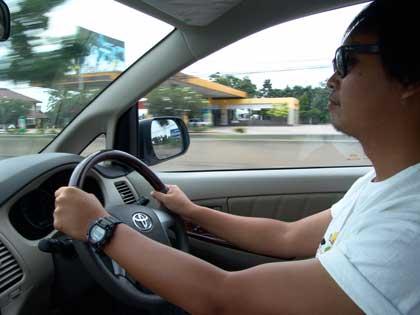 บนเส้นทางการทดสอบตัวรถ Innova Minor Change ทีมพีอาร์ของ Toyota ได้กำหนดเส้นทางในช่วงเช้าจากหน้าโรงแรมดุสิตธานี มุ่งหน้าขึ้นทางด่วน ลงทางต่างระดับที่ถนนพระราม 2 ใช้เส้นทางสายธนบุรีปากท่อ (ทางหลวงหมายเลข 35) ผ่านสมุทรสาคร (แม่น้ำท่าจีน) สมุทรสงคราม (แม่น้ำแม่กลอง) เลี้ยวซ้ายเข้าถนนเพชรเกษม (ทางหลวงหมายเลข 4) บริเวณแยกวังมะนาวแล้วขับต่อไปจนถึงจุดเปลี่ยนคนขับจุดแรกที่ปั๊มน้ำมัน ปตท. ในเขตจังหวัดเพชรบุรี ซึ่งในวันทดสอบนั้นผมจับคู่กับน้องอาร์ตจากหนังสือพิมพ์สยามธุรกิจ เป็นน้องอีกคนในกลุ่มสื่อมวลชนสายยานยนต์ที่มักได้ร่วมงานกันอยู่เสมอๆ ทั้งการขับขี่ทดสอบทางไกล เดินทางไปทำข่าวรถแข่งที่ต่างประเทศ หรือล่าสุดที่ได้ร่วมเดินทางด้วยกันไปดูงานที่ประเทศเกาหลีใต้ทำให้เกิดความสนิทสนมในระดับที่ดีมาก ช่วงทดสอบแรกสุดผมรับหน้าที่ขับจากตัวโรงแรมไปยังเขตจังหวัดเพชรบุรี โดยมีน้องอาร์ตนั่งสบายๆ บนที่นั่งของเบาะผู้โดยสารตอนหน้า คอยปรับเปลี่ยนเพลงจากเครื่องเล่น iPod ที่ผมมักพกพาไปด้วยยามออกเดินทางขับขี่ทดสอบรถยนต์รุ่นใหม่