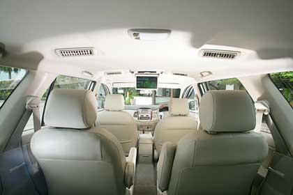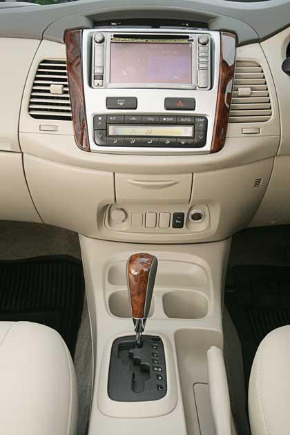 วงพวงมาลัยแบบสี่ก้านขอบ ด้านบนทำด้วยไม้ ติดตั้งสวิชต์มัลติฟังก์ชั่นมาให้ใช้ปรับชุุดเครื่องเสียงคล้ายกับพวงมาลัย บนรถ Fortuner ส่วนหน้าปัดและอุปกรณ์ภายในเน้นการจัดวางโดยเอื้อต่อประโยชน์ใช้สอย ซุ้มเกียร์มีช่องวางแก้ว หัวเกียร์ลายไม้กับตำแหน่งการเข้าเกียร์แบบร่องหยัก กล่องเก็บของหลังซุ้มเกียร์ ที่เก็บแว่นตากันแดด ช่องเก็บของในบริเวณบานประตูทั้งสี่ ในรุ่น 2.0G A/T มีลำโพง 6 ทิศทางให้เสียงในระดับปานกลาง มีมิติครบทั้งเบส-กลาง-แหลม รองรับการฟังเพลงยามเดินทางหรือซาวด์แทร็กจาก DVD ได้ดีจนแทบไม่ต้องไปดิ้นรนเสียเงินเพิ่ม