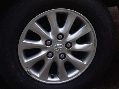 รถ Innova Minor Change ใช้ล้ออัลลอยลาย 10 ก้านสีเงินขนาด 15 นิ้ว แบบห้ารูนอตยึด ห่อรัดไว้ด้วยยาง Donlop SP Sport ไซส์ 205/65/R15 ซึ่งเป็นขนาดของล้อและยางรถเก๋งทั่วๆ ไป มีประสิทธิภาพโดยรวมเหมาะสมกับขนาดและการทำความเร็วของตัวรถ Innova ส่วนบั้นท้ายยังคงคล้ายกับรุ่นที่แล้วเนื่องจากเป็นเพียงโมเดลปรับโฉม ไฟท้ายโพลิเมอร์สีแดงขาว ทรงเดียวกันกับตัวที่แล้วแต่ใช้การปรับรายละเอียดภายในรวมถึงสีสันให้ เปลี่ยนไปบ้าง กระจกบานหลังมีขดลวดละลายฝ้า ใบปัดน้ำฝนหลังกับชุดไฟเบรกดวงที่สามด้านในของกระจกบานหลัง กับชิ้นงานพลาสติกโครเมี่ยมมือจับฝาท้ายประทับตรา Innova ที่ช่วยเพิ่มมุมมองด้านท้ายของตัวรถให้ดูดีขึ้น และไม่เรียบจนเกินไป มุมทั้งสองข้างของสปอยเลอร์หลังมีแถบพลาสติกสะท้อนแสงสีแดง ตัวสปอยเลอร์หลังยังมีเซนเซอร์ถอยหลังติดตั้งมาให้จากโรงงาน