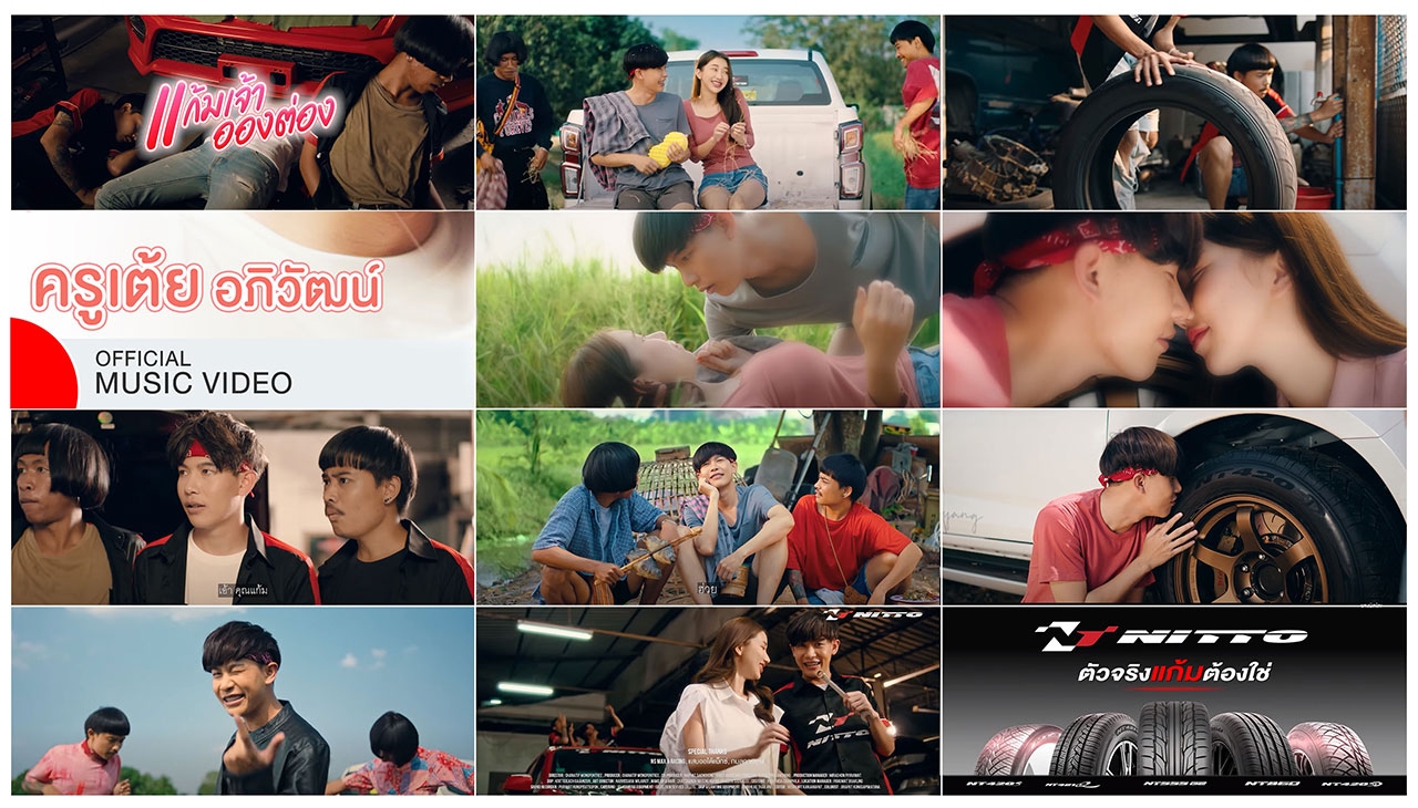 ยางนิตโตะ (Nitto) ส่ง “ครูเต้ย อภิวัฒน์” หรือ อภิวัฒน์ บุญเอนก นักร้องอินดี้มาแรง 100 ล้านวิว ปล่อยของเด็ด MV เพลง “แก้มเจ้าอ่องต่อง” ชูจุดเด่นที่สอดคล้องกับแก้มของยางนิตโตะสไตล์สปอร์ตรุ่น NT420 SD ที่ “อ่องต่อง” น่ารัก พร้อมลวดลายของยางที่สวยและเป็นเอกลักษณ์ โดยเป็นแนวเพลงลูกทุ่ง จังหวะสนุก ฟังติดหู สื่อถึงคนกำลังมีความรักตามสไตล์ลูกทุ่งอีสาน ที่กลุ่มแฟนคลับครูเต้ยชื่นชอบอยู่แล้ว และยังเป็นนักร้องหนุ่มอีสานที่ได้รับการยอมรับในฐานะนักร้องที่มีชื่อเสียง มีความเป็นกันเอง น่ารัก ที่สำคัญมีฐานแฟนคลับเหนียวแน่นมาก ตอบโจทย์ความต้องการของยางนิตโตะที่มาเจาะกลุ่มการตลาดแถบภาคตะวันออกเฉียงเหนือ (ภาคอีสาน) ให้เป็นที่รู้จักผ่านครูเต้ยและบทเพลง “แก้มเจ้าอ่องต่อง” เพื่อเพิ่มการรับรู้ของแบรนด์ Nitto ให้มากยิ่งขึ้น