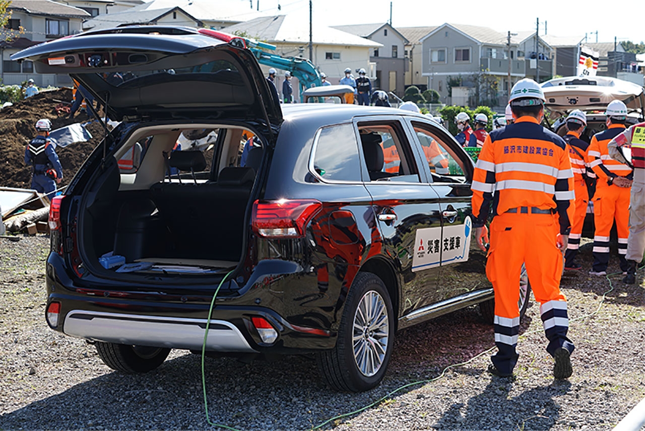 มิตซูบิชิ เอาท์แลนเดอร์ พีเอชอีวี สามารถจ่ายกระแสไฟฟ้าจากตัวรถมาใช้กับเครื่องใช้ไฟฟ้าต่างๆ ที่มีขนาด สูงสุดถึง 1,500 วัตต์ ด้วยการเสียบปลั๊กเข้ากับช่องจ่ายกระแสไฟฟ้าภายในตัวรถที่มีอยู่ 2 จุด เพื่อให้สามารถสัมผัสกับไลฟ์สไตล์กลางแจ้งรูปแบบใหม่ และยังสามารถใช้เป็นแหล่งพลังงานไฟฟ้าสำรองเมื่อเกิดเหตุการณ์ฉุกเฉิน หรือ กรณีที่ไฟฟ้าดับ เพราะ มิตซูบิชิ เอาท์แลนเดอร์ พีเอชอีวี สามารถผลิตกระแสไฟฟ้าได้เอง และยังสามารถจ่ายกระแสไฟฟ้าให้แก่ที่พักอาศัยด้วยเทคโนโลยีระบบพลังงานแบบ Vehicle-to-Home (V2H) ได้นานถึง 10 วัน สำหรับครัวเรือนทั่วไป โดยแบตเตอรี่ต้องถูกชาร์จไฟเต็มและมีน้ำมันเต็มถัง