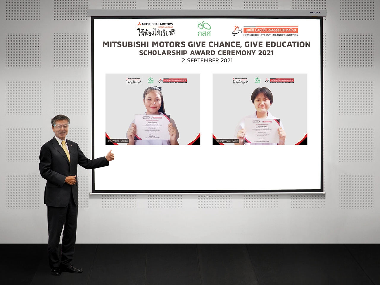 “มิตซูบิชิ มอเตอร์ส ประเทศไทย ร่วมกับ กองทุนเพื่อความเสมอภาคทางการศึกษา ภายใต้การกำกับดูแลของนายกรัฐมนตรี ได้ก่อตั้งโครงการ “มิตซูบิชิ มอเตอร์ส ให้น้องได้เรียน” เพื่อมอบทุนการศึกษาให้แก่นักเรียนในระดับมัธยมศึกษาตอนต้นที่มีผลการเรียนดีเด่น ให้สามารถพัฒนาศักยภาพด้านการศึกษาของตนได้ โดยในปีนี้โครงการได้มอบทุนการศึกษาให้กับนักเรียนรวมทั้งสิ้น 100 คน โดยแบ่งเป็นนักเรียนในจังหวัดชลบุรี 70 คน และจังหวัดปทุมธานี 30 คน ซึ่งอยู่ในพื้นที่ตั้งของศูนย์การผลิตที่แหลมฉบังและสถาบันการศึกษาและฝึกอบรม มิตซูบิชิ มอเตอร์ส ประเทศไทย ซึ่งผมขอแสดงความยินดีกับนักเรียนทุกคนที่ได้รับทุนการศึกษาในปีนี้ ขอให้เด็ก ๆ ทุกคนขยันตั้งใจเรียน และมุ่งมั่นพยายามทำตามความฝันของตนเองให้สำเร็จ และขอขอบคุณทุกภาคส่วนที่ให้การสนับสนุนโครงการนี้เป็นอย่างดี” มร.ชกกิ กล่าวเพิ่มเติม
