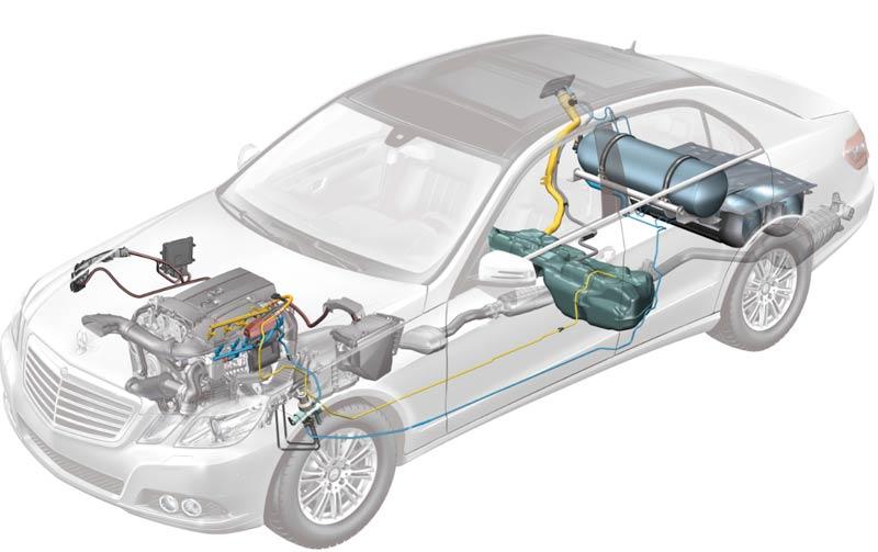 Mercedes Benz ค่ายรถแบรนด์หรูหราระดับพรีเมี่ยมของเยอรมนี นับเป็นบริษัทผู้ผลิตยนตรกรรมเจ้าแรกๆ ที่บุกเบิกพัฒนา วิจัย และทดสอบเครื่องยนต์แบบดีเซลคอมมอลเรล หรือที่เรียกว่า CDI - Common Rail Direct Injection เมื่อปี 2001 บริษัท Mercedes Benz ยังเป็นแบรนด์หรูที่นำเอาเทคโนโลยีการขับเคลื่อนด้วยแก๊สมาเปิดตลาดในประเทศไทยเป็นครั้งแรกในงาน Bangkok Motor Show 2006 (บางกอกมอเตอร์โชว์ของปี 2006) ตามมาด้วยเสียงตอบรับและความสำเร็จในยอดจำหน่าย เนื่องจากได้รับความนิยมสูงในกลุ่มลูกค้าของค่ายตราดาวที่นิยมรถซีดานหรูหรา มีระดับ อุปกรณ์ที่ติดตั้งในตัวรถ Mercedes Benz ซึ่งถูกออกแบบมาเพื่อใช้สำหรับก๊าซ NGV ได้มาตรฐานเนื่องจากทำการติดตั้งมาจากโรงงานโดยผ่านการวิจัยและพัฒนาจากวิศวกรของ Mercedes Benz จึงทำให้ตัวรถสามารถรองรับน้ำหนักของถังแก๊สและกระจายน้ำหนักได้อย่างลงตัว ทั้งถังเชื้อเพลิงกับถังแก๊สที่ติดตั้งอยู่ภายในโครงรถ