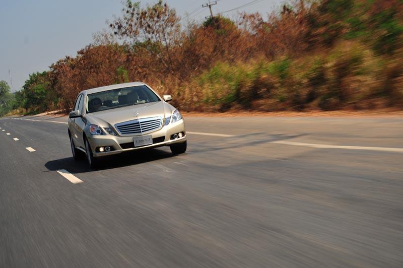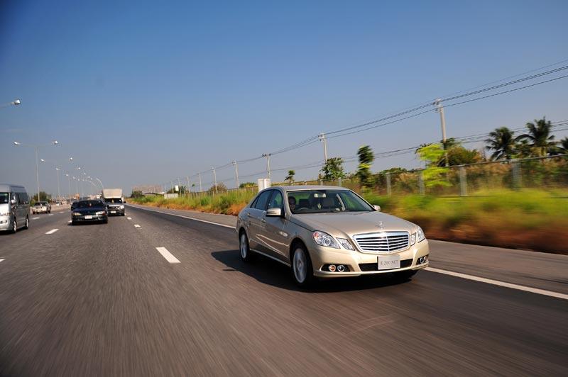 ที่ความเร็วเดินทางในระดับ 140-160 กิโลเมตรต่อชั่วโมง อาการของเจ้า E 200 NGT BlueEFFICIENCY ELEGANCE ยังคงมั่นคงดีในการยึดเกาะกับผิวถนนบนทางหลวงจังหวัดชลบุรีเชื่อมต่อระยอง แม้ช่วงล่างแบบมัลติลิงก์ของมันจะส่ออาการนิ่มนวลจนเกินงาม แต่รถคันนี้มีระบบรองรับที่ถูกออกแบบให้นั่งโดยสารได้อย่างสบาย รอยต่อของถนน คอสะพาน ไม่สร้างปัญหาในการทรงตัวมากนักเมื่อวิ่งด้วยความเร็วสูงในระดับ 160 กิโลเมตรต่อชั่วโมง ความนิ่มของช่วงล่างที่มากกว่าBMW Serries 5 โมเดล F10 คู่แข่งสำคัญในตลาดรถซีดานขนาดกลางระดับพรีเมี่ยมทำให้ได้ใจคนชอบสบาย และเหล่าผู้บริหารสูงวัยไปแบบเต็มๆ ส่วนอุปกรณ์อำนวยความสะดวกที่มีมาให้ สามารถรองรับการใช้งานและเพิ่มความสะดวกได้ดี รูปแบบของห้องโดยสารในสไตล์ของค่ายตราดาวมีความหรูบวกงานตัดเย็บพวกหนังแท้ และชิ้นส่วนที่เป็นพลาสติกเช่น ปุ่ม สวิตช์ต่างๆ ออกแบบให้บิดจับ หมุนหรือกดโดยใช้ผิวสัมผัสและวัสดุเกรดสูงทั้งสิ้น งานประกอบคอนโซล ซุ้มเกียร์ ชุดควบคุมอุณหภูมิ เครื่องเสียง ล้วนแล้วแต่มีความประณีตในระดับสูงสุด ซึ่งเป็นไปตามลักษณะของแบรนด์ตราดาวจากเยอรมนี ผู้ผลิตยานยนต์คุณภาพมาช้านานกว่า 100 ปีแล้ว