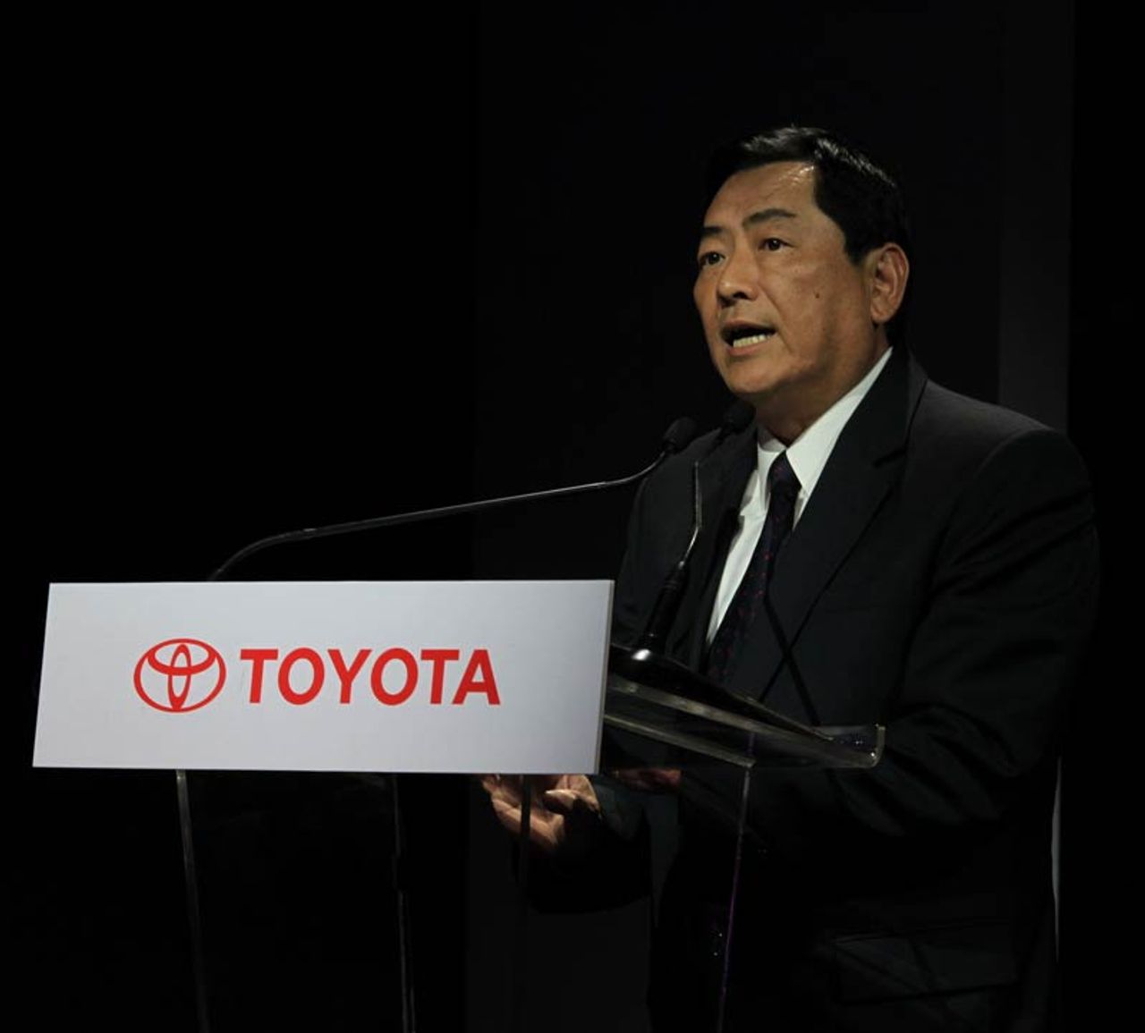 มร.เคียวอิจิ ทานาดะ กรรมการผู้จัดการใหญ่ บริษัท Toyota Motor Thailand Co.ltd แถลงแนะนำ Toyota Pavilion ในงาน BOI Fair 2011 เมื่อวันที่ 4 มกราคม 2555 บริเวณริมทะเลสาบเมืองทองธานี...