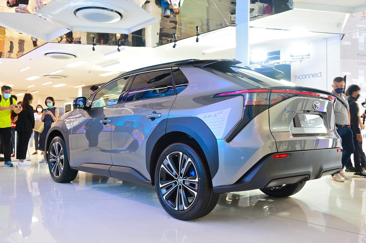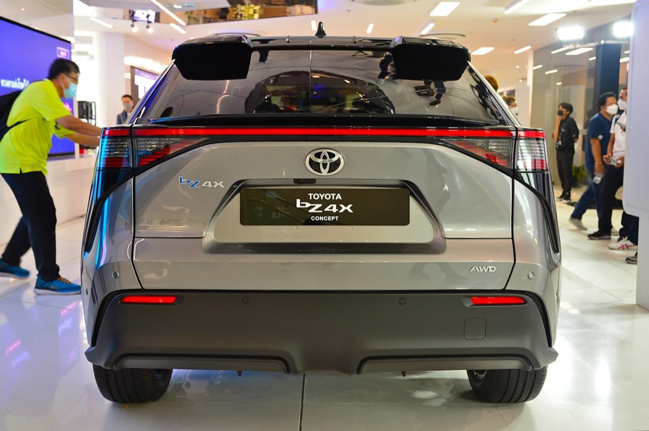 ขนาดและสัดส่วนของ bZ4X EV นั้นคล้ายกับ Toyota RAV4 อย่างไรก็ตาม bZ4X นั้นทำตัวเป็นยานยนต์พลังงานไฟฟ้าที่ต้องดูเฉียบคมและมีตัวเลขแอโรไดนามิกเหนือกว่าจากการที่ไม่ต้องมีช่องรับอากาศเข้าไประบายความร้อนให้กับเครื่องยนต์ Toyota bZ4X ออกแบบใหม่หมดตั้งแต่เริ่มแรกในโครงการรถยนต์ EV สัดส่วนความสูงที่เตี้ยกว่า ส่วนท้ายสไตล์คูเป้ ทำให้รถยนต์ไฟฟ้าของพี่โต มีลักษณะสปอร์ตแพลตฟอร์ม EV ทำให้ bZ4X มีระยะโอเวอร์แฮงก์สั้นกุด ฐานล้อยาวเพื่อเพิ่มพื้นที่ภายในเทียบได้กับซีดาน D-segment (Toyota Camry) การออกแบบให้แผงหน้าปัดและตำแหน่งของแผงหน้าปัดแบบดิจิตอลอยู่ในระดับต่ำ ช่วยเพิ่มความรู้สึกของพื้นที่ภายในห้องโดยสาร ในขณะเดียวกัน มีการปรับปรุงทัศนวิสัยการมองเห็นให้ครอบคลุม bZ4X รุ่น AWD ติดตั้งระบบขับเคลื่อนสี่ล้อที่พัฒนาร่วมกับ Subaru ส่วนออปชันหลังคาโซลาร์รูฟสำหรับชาร์จแบตเตอรี่เมื่อรถจอดอยู่กับที่ ไม่ได้ระบุไว้ในรุ่นข้อมูลจำเพาะของตลาดรถยนต์ไฟฟ้าในสหรัฐอเมริกา การผลิต Toyota bZ4X สเปกสหรัฐฯ จะมีขึ้นในโรงงาน Toyota ที่ญี่ปุ่น