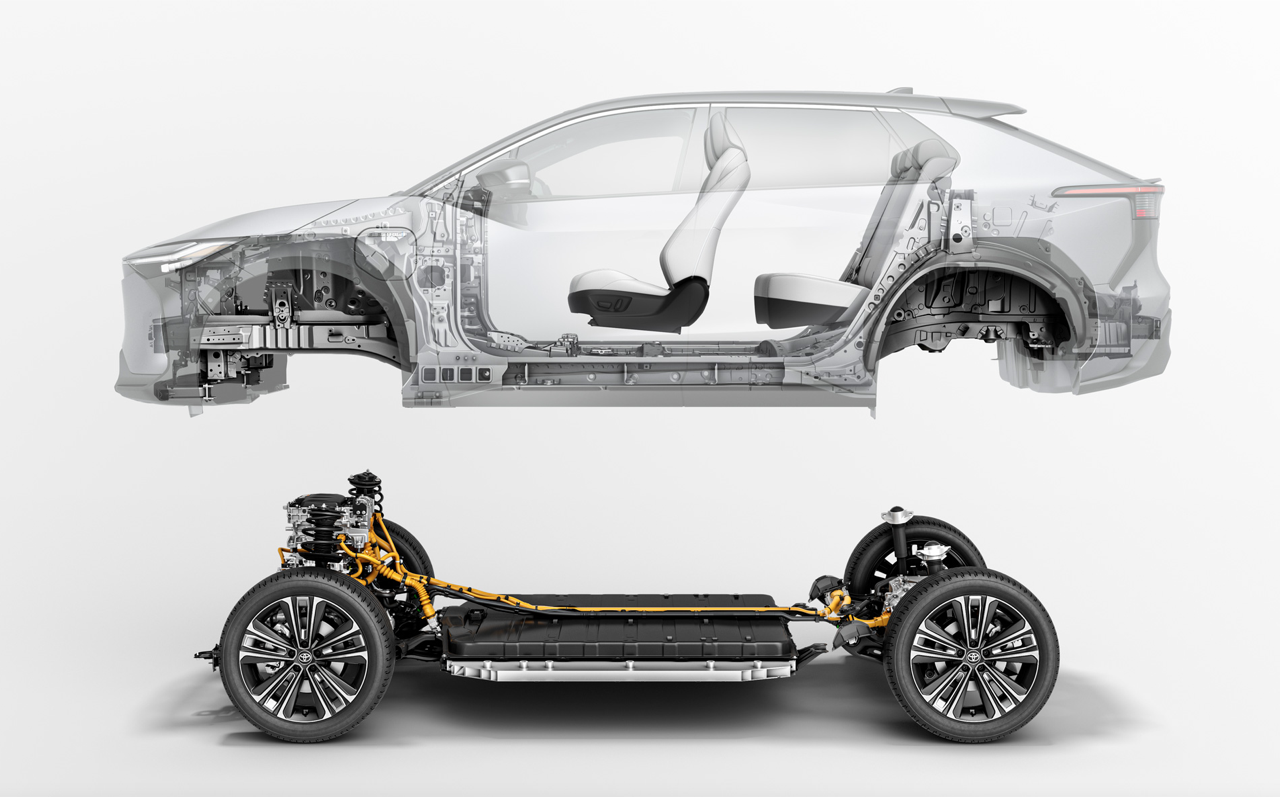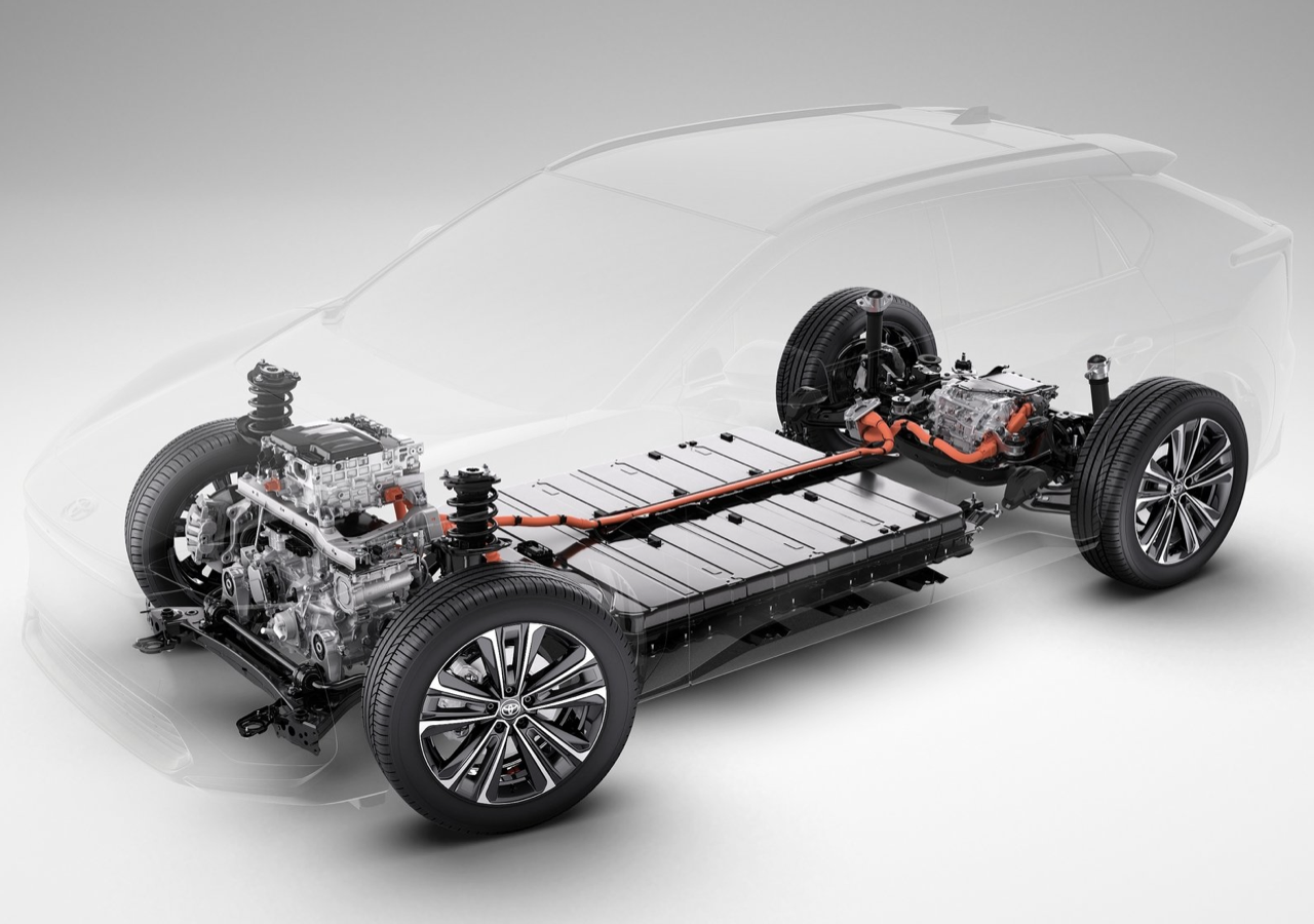 ยานยนต์ EV ขนาดกะทัดรัดที่ผลิตขึ้นโดยใช้แพลตฟอร์มเฉพาะของรถยนต์ไฟฟ้า ส่วนใหญ่จะใช้รูปแบบการขับเคลื่อน RWD หรือขับเคลื่อนล้อหลัง สำหรับรุ่นเริ่มต้นของ Toyota bZ4X เป็นรุ่นขับเคลื่อนล้อหน้า FWD รุ่นพื้นฐาน ติดตั้งมอเตอร์ตัวเดียว วางคร่อมเพลาหน้า ขับเคลื่อนล้อหน้า มอเตอร์ไฟฟ้าขับเคลื่อน มีกำลัง 150 กิโลวัตต์ (201 แรงม้า) แรงบิด 296 นิวตันเมตร (196 ปอนด์-ฟุต) ส่วน Toyota bZ4X รุ่นท็อปมีมอเตอร์สองตัว มอเตอร์หนึ่งตัววางคร่อมเพลาขับหน้าและอีกหนึ่งตัวอยู่บนเพลาขับด้านหลัง โดยแต่ละตัวให้กำลัง 80 กิโลวัตต์ (107 แรงม้า) แรงบิดมอเตอร์แต่ละตัวอยู่ที่ 168 นิวตันเมตร (124 ปอนด์-ฟุต) กำลังขับรวมของมอเตอร์คู่ทำออกมาได้ 214 แรงม้า ผู้ขับสามารถเลือกตำแหน่งเกียร์ขับเคลื่อนได้โดยใช้ตัวเปลี่ยนเกียร์แบบแป้นหมุน ซึ่งเกียร์แบบนี้ ถูกใช้เป็นครั้งแรกในรถยนต์ Toyota