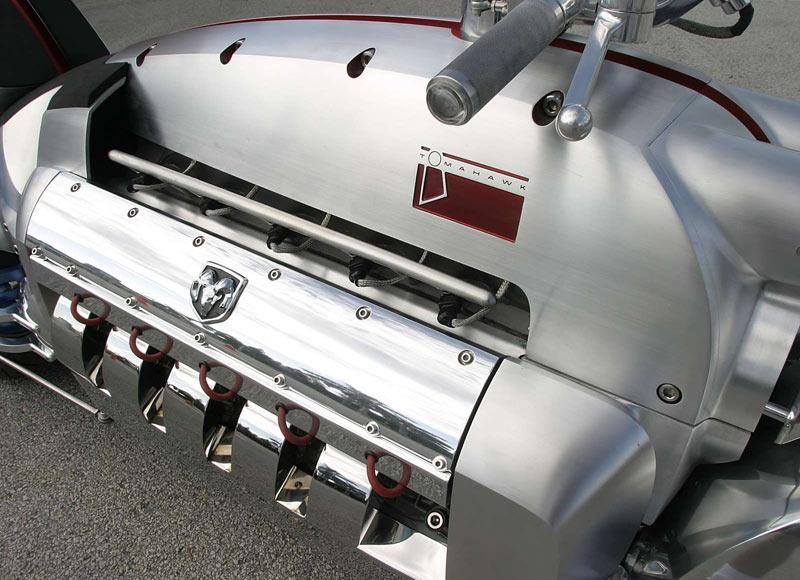 การออกแบบของ Dodge Tomahawk เป็นการทำลายทุกความเชื่อและกฎเกณฑ์ทุกอย่างในอดีตออกไปแทบหมดสิ้น มันถูกขับเคลื่อนด้วยล้อทั้ง 4 แทนระบบ 2 ล้อแบบทั่วไป