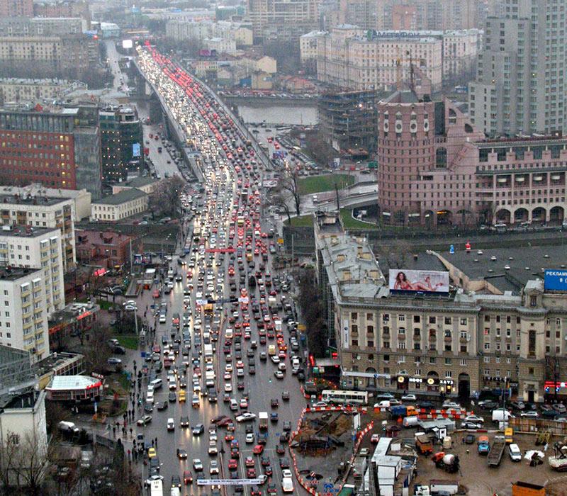 การจราจรบนถนนของรัสเซียในกรุงมอสโก จะสาหัสที่สุดในช่วงฤดูหนาว เนื่องจากถนนหลายจุดจะใช้การไม่ได้เพราะถูกปกคลุมด้วยหิมะ ในขณะที่ความต้องการที่จะสัญจรไปมาของผู้คนไม่ได้ลดน้อยลงไป
