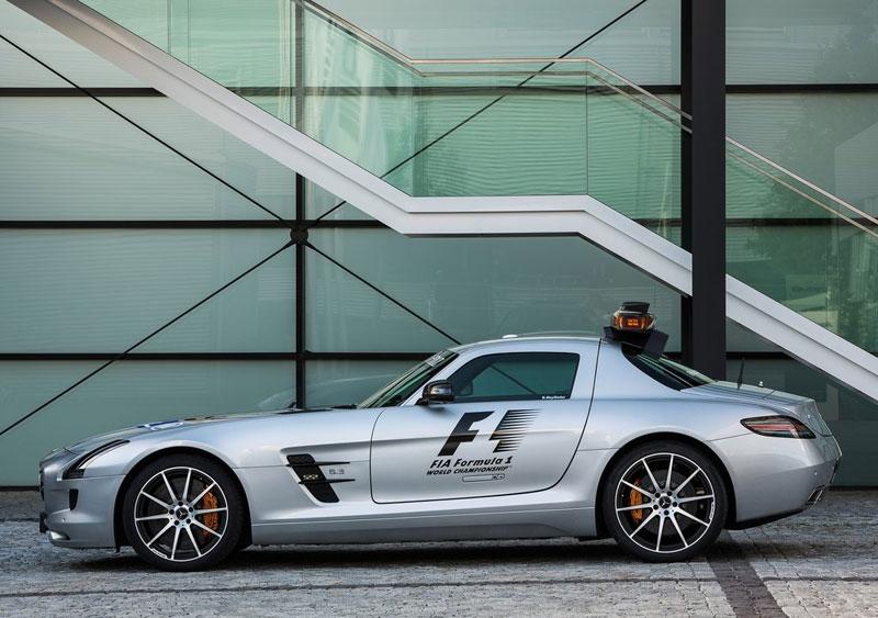 'SLS AMG GT' คันนี้ ถูกเรียกเข้าประจำการครั้งแรกในการแข่งขัน 'F1 Shell Belgian Grand Prix 2012' มันถูกพัฒนาด้านอากาศพลศาสตร์และน้ำหนัก สร้างความโดดเด่นของสายพันธุ์สปอร์ตออกมาให้เด่นชัดมากยิ่งขึ้น โครงสร้างถูกสร้างขึ้นจะอะลูมิเนียมน้ำหนักเบา ทำให้มันมีน้ำหนักเพียง 1,620 กก. เท่านั้น