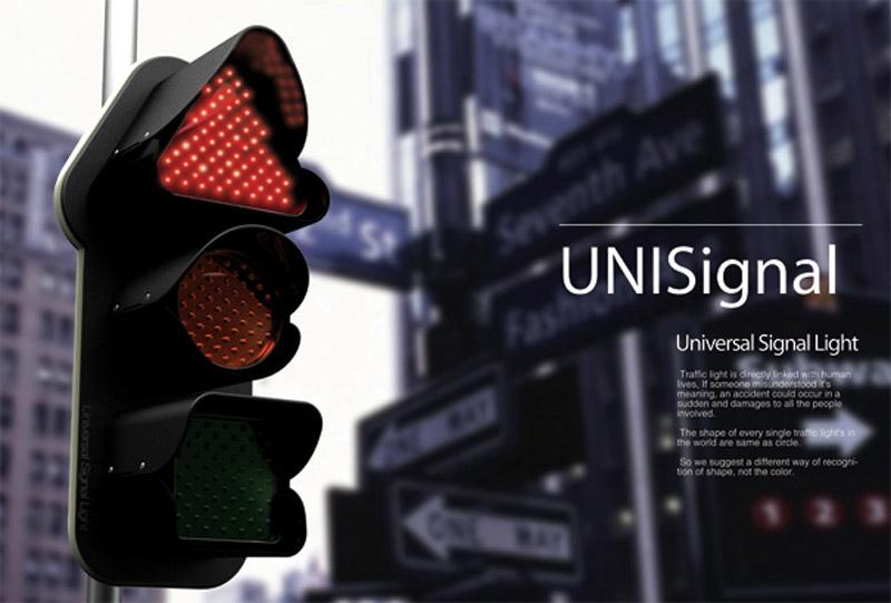 ไฟ 3 สี ถูกจัดเรียงแบบแนวตั้งดูเดิมๆ เพียงแค่จับรูปทรงเรขาคณิตเป็นลูกเล่นเข้าไปเท่านั้น แต่!!...สิ่งที่ลึกซึ้งในตัวมันคือ รูปทรงของสัญญาณไฟแต่ละสีมันกลับมีคุณค่าอย่างมากแก่ผู้ที่ตาบอดสี ไม่สามารถแยกแยะระหว่างสีได้ เพราะรูปทรงของมันทำให้คนเหล่านั้นสามารถรู้ได้ว่าตอนนี้สัญญาณไฟเป็นสีใดนั่นเอง...เยี่ยมจริงๆ