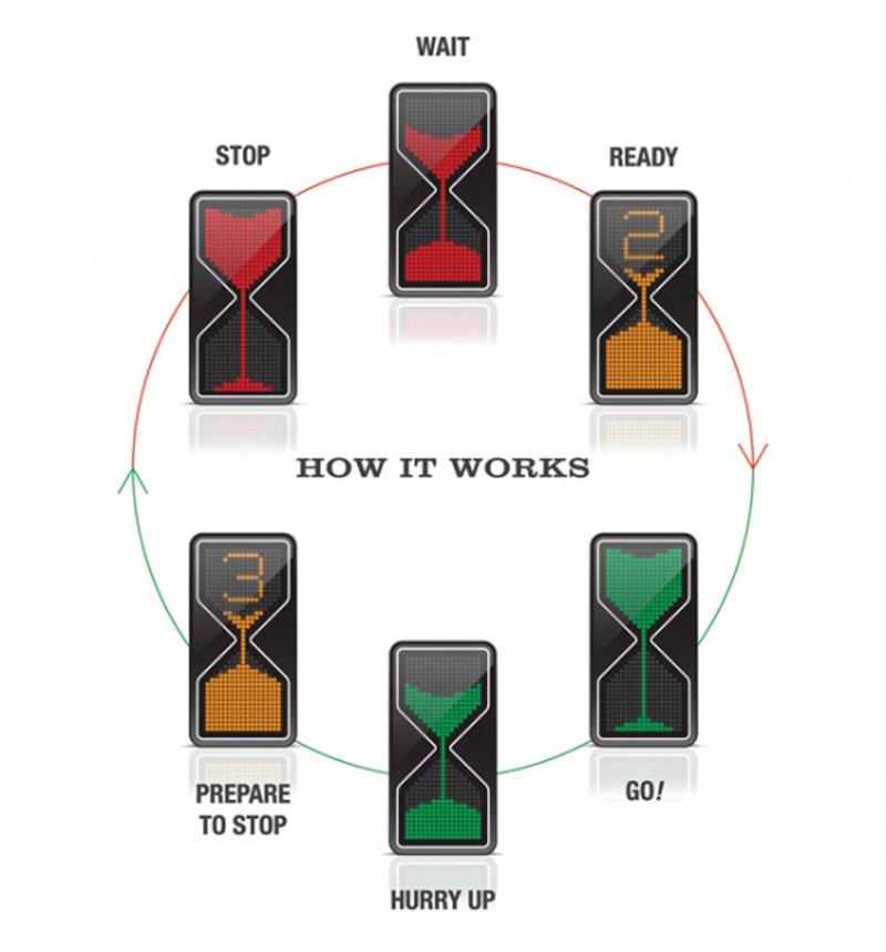 นึกคำจำกัดความของไฟจราจรที่ถูกออกแบบโดย Damjan Stankovic ไม่ออก เพราะการทำงานของมันก็คือนับถอยหลังเวลาเพื่อเปลี่ยนสัญญาณไฟ เหมือนที่ในบ้านเราเป็นตัวเลขดิจิทัลนั่นแหละ