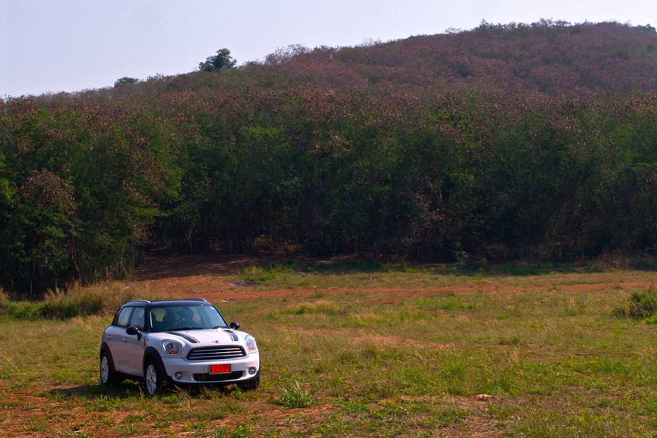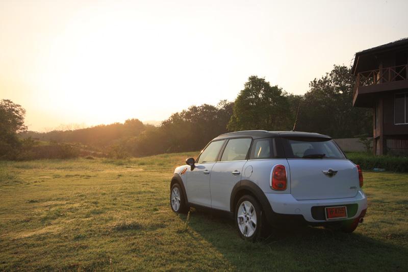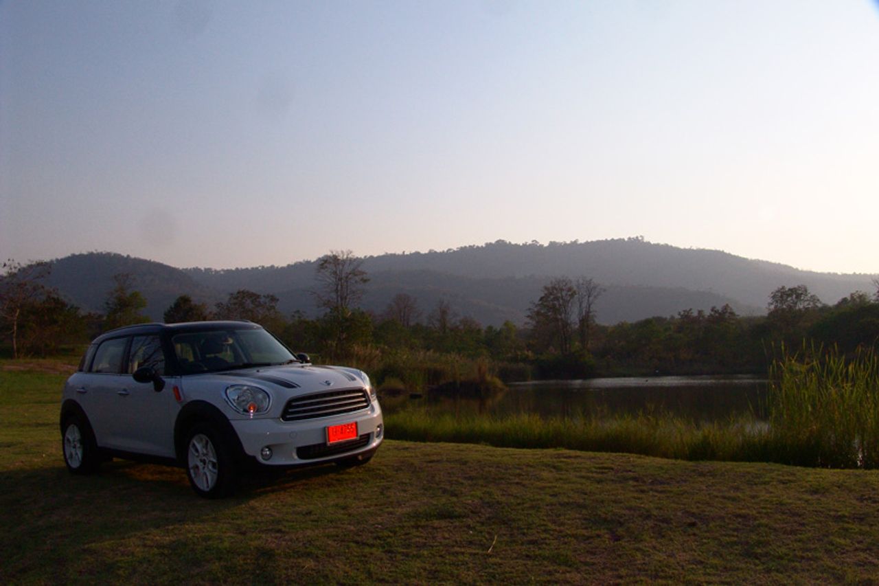 การเดินทางไปบนความหนึบนุ่มของระบบรองรับใน Countryman แบบนี้ทำให้ระยะทางทั้งไปและกลับรวมถึงช่วงเวลาหนึ่งอาทิตย์เต็มๆ ที่อยู่ ร่วมกันบนระยะทางรวม 590 กิโลเมตรเต็มไปด้วยความสะดวกสบาย คุณแค่ขึ้นไปนั่งขับอย่างมีสติและมันจะพาคุณไปถึงจุดหมายได้ตามที่ต้องการ ทางหลวงจังหวัดที่ผมใช้มีเส้นทางแยกย่อยเต็มไปหมดและรถทดสอบคันนี้ก็ไม่มีระบบนำทางและกำหนดตำแหน่งด้วยดาวเทียมมาให้เนื่องจากเป็นรุ่นปกติไม่ใช่รุ่น Cooper SD ผมเสียเวลาไปบ้างจากการวิ่งลัดเลาะเก็บภาพไล่ตั้งแต่ทางขึ้นเขาใหญ่ในฝั่งปากช่องไปจนถึงคีรีมายาจนไปจบลงที่มุติมายาซึ่งมีวิวทิวทัศน์ที่สงบและ สวยงาม มันเป็นโลเกชั่นที่ดีสำหรับการถ่ายภาพรถทดสอบ จากท้องฟ้าในช่วงเย็นปลายเดือนกุมภาพันธ์ที่เต็มใจมอบห้วงเวลาของแสงที่สวยงาม และความกระจ่างตาของสีสันในช่วงต้นฤดูร้อน บนถนนที่ขนานไปกับภูเขาและทะเลสาบเล็กๆ เงียบเชียบปราศจากรถราของมุติมายา ผมขับลงไปจอดถึงชายบึงโดยระวังไม่ให้รถลงไปในหล่มแล้วนั่งลงเพลิดเพลินกับบรรยากาศรอบๆ ตัวโดยมีเจ้า Countryman Cooper D จอดสงบนิ่งอยู่ข้างๆ