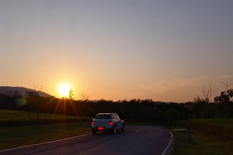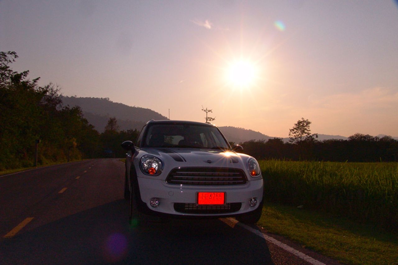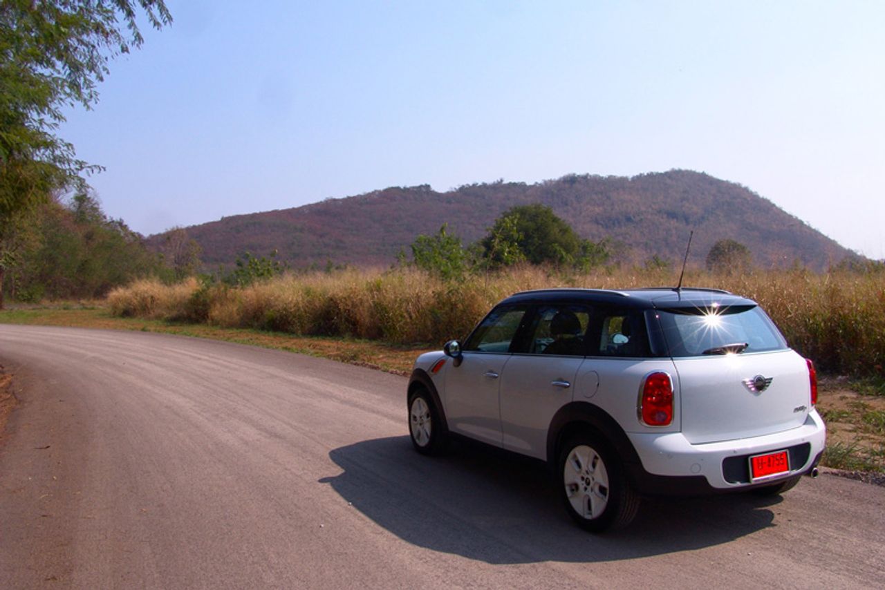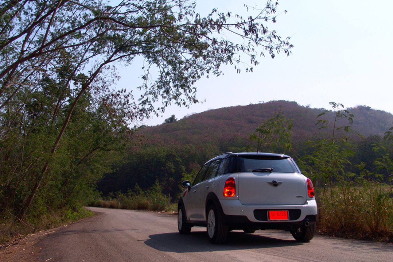 การเดินทางไปบนความหนึบนุ่มของระบบรองรับใน Countryman แบบนี้ทำให้ระยะทางทั้งไปและกลับรวมถึงช่วงเวลาหนึ่งอาทิตย์เต็มๆ ที่อยู่ ร่วมกันบนระยะทางรวม 590 กิโลเมตรเต็มไปด้วยความสะดวกสบาย คุณแค่ขึ้นไปนั่งขับอย่างมีสติและมันจะพาคุณไปถึงจุดหมายได้ตามที่ต้องการ ทางหลวงจังหวัดที่ผมใช้มีเส้นทางแยกย่อยเต็มไปหมดและรถทดสอบคันนี้ก็ไม่มีระบบนำทางและกำหนดตำแหน่งด้วยดาวเทียมมาให้เนื่องจากเป็นรุ่นปกติไม่ใช่รุ่น Cooper SD ผมเสียเวลาไปบ้างจากการวิ่งลัดเลาะเก็บภาพไล่ตั้งแต่ทางขึ้นเขาใหญ่ในฝั่งปากช่องไปจนถึงคีรีมายาจนไปจบลงที่มุติมายาซึ่งมีวิวทิวทัศน์ที่สงบและ สวยงาม มันเป็นโลเกชั่นที่ดีสำหรับการถ่ายภาพรถทดสอบ จากท้องฟ้าในช่วงเย็นปลายเดือนกุมภาพันธ์ที่เต็มใจมอบห้วงเวลาของแสงที่สวยงาม และความกระจ่างตาของสีสันในช่วงต้นฤดูร้อน บนถนนที่ขนานไปกับภูเขาและทะเลสาบเล็กๆ เงียบเชียบปราศจากรถราของมุติมายา ผมขับลงไปจอดถึงชายบึงโดยระวังไม่ให้รถลงไปในหล่มแล้วนั่งลงเพลิดเพลินกับบรรยากาศรอบๆ ตัวโดยมีเจ้า Countryman Cooper D จอดสงบนิ่งอยู่ข้างๆ