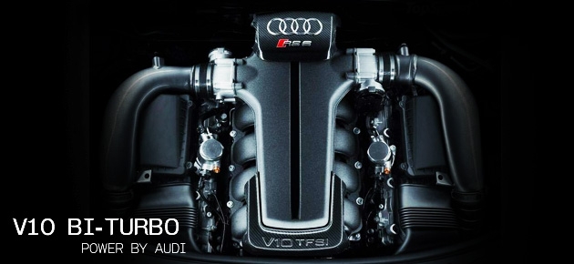 ก่อกำเนิดขึ้นเป็นเครื่องยนต์ที่สามารถแปรเปลี่ยนยนตรกรรมธรรมดาคัน หนึ่งให้กลายเป็นรถที่มีสมรรถนะสูงสุด เครื่องยนต์ที่มีต้นกำลังมหาศาลตัวนีี่ก็คือเครื่อง V10 Bi-Turbo ซึ่งนำเทคโนโลยีอันก้าวกระโดดของเครื่องยนต์รถแข่งในทีม Audi ที่ใช้สังเวียนสนามแข่งรถระดับโลกเฉกเช่นสนามเลอมังส์เป็นที่ปลดปล่อยพละ กำลังมหาศาลและสามารถกำชัยชนะได้อย่างต่อเนื่อง