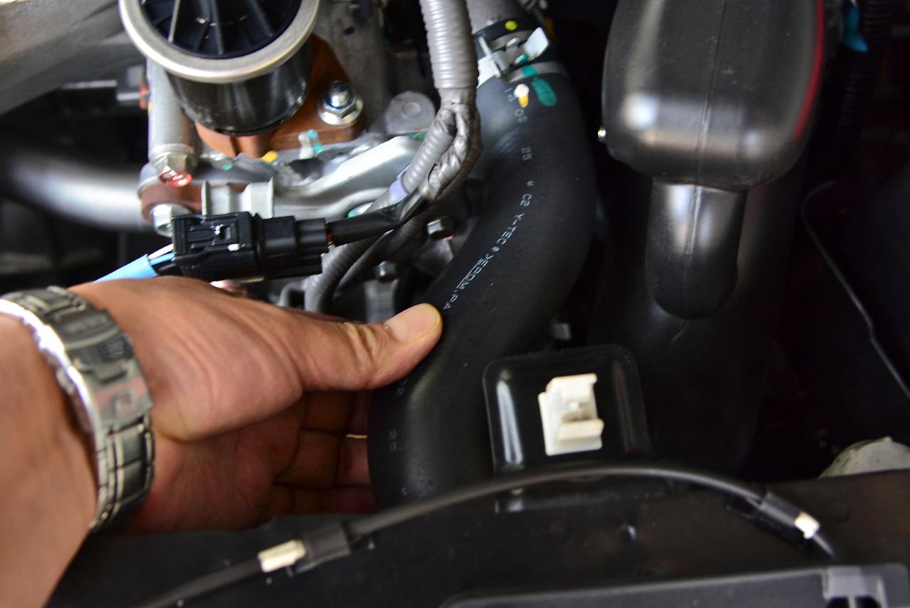 4- เอานิ้วมือบีบท่อยางเข้าหม้อน้ำซึ่งมีทั้งท่อยางตัวบนและตัวล่าง หากพบว่าเริ่มแตกกรอบก็ควรเปลี่ยนท่อยางใหม่ทันที พร้อมกับเปลี่ยนสายรัดท่อยางไปด้วยเลย สายรัดโลหะใช้งานมานานอาจเกิดการเสื่อมสภาพรัดไม่อยู่จนแรงดันในระบบดันน้ำออกมาราวกับหัวรถจักรไอน้ำ สายพานปั๊มน้ำที่คล้องไปมาด้านข้างของเครื่องยนต์หากเป็นรถขับหน้าเครื่องวางขวางหรืออยู่ด้านหน้าหากเป็นรถขับหลังวางเครื่องตามยาว หรือเครื่องยนต์แบบ V ตรวจดูสายพานด้วยตา