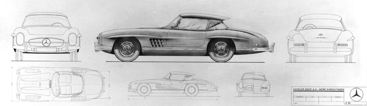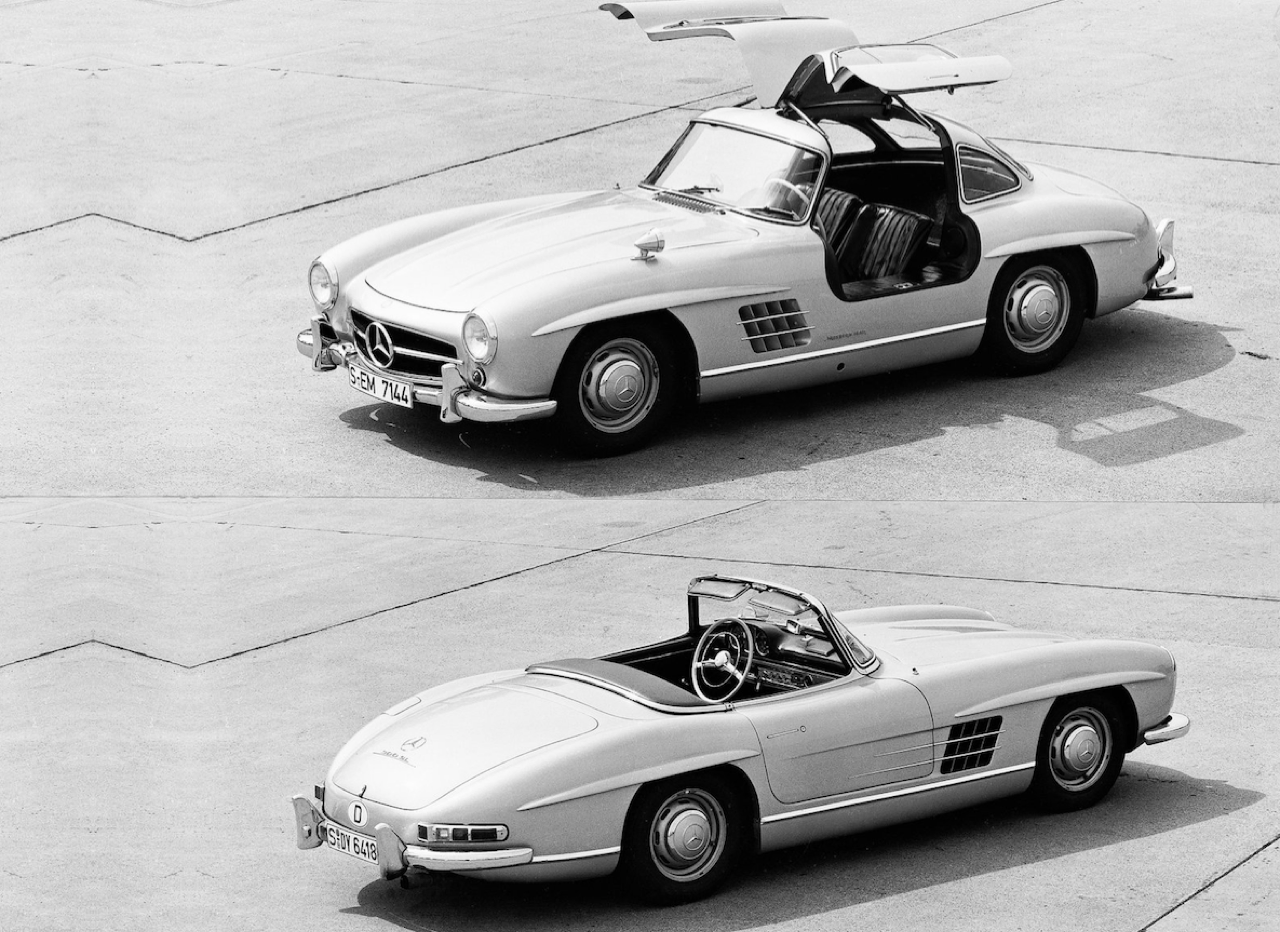 Mercedes Benz 300SL Gullwing วางจำหน่ายในปี ค.ศ. 1954-1957 ใช้เทคโนโลยีขั้นสูงสุดของรถแข่งในบริษัท Mercedes Benz ที่ประสบความสำเร็จคว้าชัยชนะได้เกือบทุกสนามแข่งขันรถยนต์ทางเรียบในทวีปยุโรปมาใส่ลงไปในตัวรถแทบทั้งหมด โดยมีประตูที่เปิดออกแบบปีกนกที่มีลักษณะแปลกแหวกแนวมากในยุค 1950 และนำชื่อประตูมาเป็นชื่อรุ่น ซึ่งนั่นก็คือที่มาของสุดยอดรถยนต์คลาสสิกตลอดกาล 300SL Gullwing การเรียกประตูของ 300SL ว่า Gullwing ก็เนื่องมาจากลักษณะของการเปิดประตูที่เหมือนกับนกที่กำลังกางปีก โดยประตูจะถูกยกขึ้นไปที่ด้านบนเหนือศีรษะ ซึ่งผู้ออกแบบประตูบานนี้นั้นมีชื่อว่า รูดอล์ฟ อูเลนเฮาท์ (RUDOLF UHLENHUAT) หัวหน้าวิศวกรฝ่ายพัฒนา เดมเลอร์-เบนซ์ เอจี (DBAG)