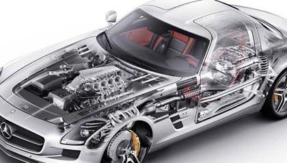 รถ Mercedes Benz SLS AMG สปอร์ตซุปเปอร์คาร์ประตูปีกนกคันล่าสุดของค่ายดาวสามแฉกมีต้นกำลังเป็น เครื่องยนต์รูปตัว V ขนาด 8 สูบ ปริมาตรความจุ 6.3 ลิตร ซึ่งเกิดจากการคิดค้น พัฒนาและทดสอบอย่างพิถีพิถันภายใต้การควบคุมดูแลของ Friedrich Eichler หัวหน้าทีมวิศวกรที่พัฒนาเครื่องยนต์และระบบส่งกำลังของแผนก AMG โดยใช้เวลาในการทดสอบและสร้างถึง 3 ปีกว่าจะได้สิ่งที่ถือได้ว่าเป็นงานคิลป์ชั้นเยี่ยมในโลกแห่งยนต์กรรม พลังทั้งหมดของเครื่องยนต์รหัส M159 เกิดขึ้นจากปฎิกิริยาที่ตอบสนองอย่างรวดเร็วภายในตัวเครื่องเมื่อมันดูด อากาศผ่านท่อไอดี อากาศที่ถูกดูดเข้าไปเพื่อเผาไหม้ร่วมกับเชื้อเพลิงแล้วจุดระเบิดออกมาเป็น พลังงานมีความเร็วบริเวณท่อทางเดินของอากาศสูงถึง 580 กิโลเมตรต่อชั่วโมงจากการตรวจจับของเซนเซอร์ในช่วงทดสอบซึ่งแจ้งข้อมูลเป็น ตัวเลขและกราฟลงบนจอมอนิเตอร์ที่เหล่าพ่อมดของแผนก AMG จ้องดูอยู่ในช่วงของการทดสอบการทำงานของเครื่องยนต์ในทุกสภาวะของการทำงาน ที่รอบเครื่องยนต์สูงสุด 7200 รอบต่อนาที M159 จะดูดกินอากาศปริมาณถึง 22 ลูกบาศก์เมตรเลยทีเดียว