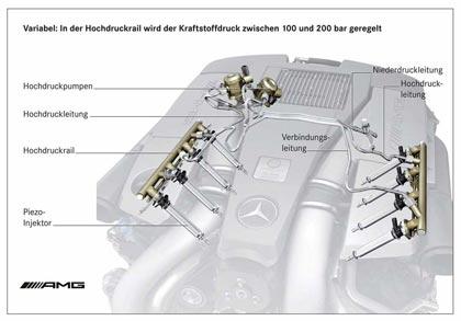 การตรวจสอบและกำหนดการ ทำงานของชิ้นส่วนภายในเครื่องยนต์รหัสM159ที่มีความเที่ยงตรงและแม่นยำสูง เป็นหน้าที่ของระบบอิเล็คโทรนิคที่ควบคุมการทำงานของทั้งเครื่องยนต์ ระบบส่งกำลังและการปรับแต่งช่วงล่าง แม้จะเป็นเพียงแค่กล่องอลูมิเนียมเล็กๆแต่การทำงานของมันถูกโปรแกรมให้ ปราศจากข้อผิดพลาดใดๆทั้งปวงที่อาจเกิดขึ้นทั้งจากความร้อนและความชื้น สมองกลไฟฟ้าที่พัฒนาขึ้นโดยวิศวกรของแผนกAMGสามารถทำการคำนวนค่าต่างๆแล้ว ประมวลผลเพื่อสั่งงานได้ถึง58ล้านครั้งต่อวินาทีเทียบเท่าหรือมีประสิทธิภาพ มากกว่าซุปเปอร์คอมพิวเตอร์ที่ใช้กันอยู่ไม่กี่ปีก่อนหน้านี้ ระบบสมองกลดังกล่าวจะมีการทำงานที่ครอบคลุมทั้งระบบของการขับขี่ โปรแกรมควบคุมการทรงตัวแบบอัตโนมัต ระบบเบรคป้องกันการลื่นไถลและการปรับระดับความสูง-ต่ำของตัวรถ เครื่องยนต์V8รหัส M159 ตัวนี้มีจะอายุการใช้งานยาวนานประมาณ250,000กิโลเมตรซึ่งเป็นตัวเลขของการ ใช้งานเครื่องยนต์ในขั้นต่ำสุดเท่านั้น