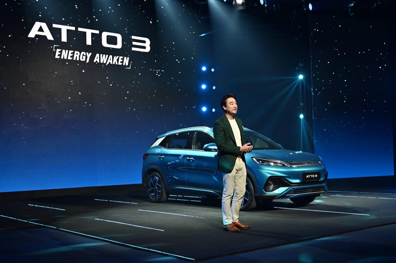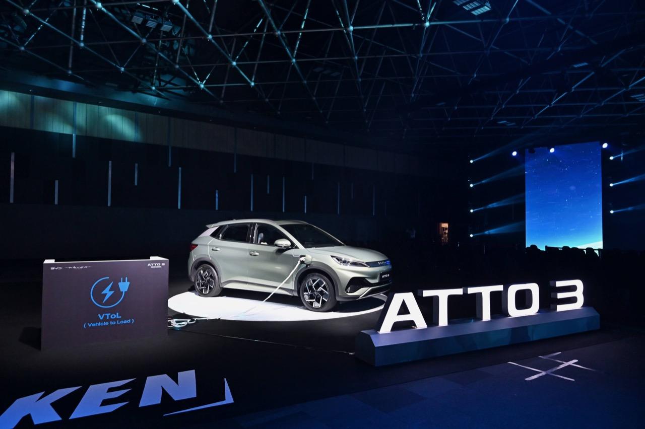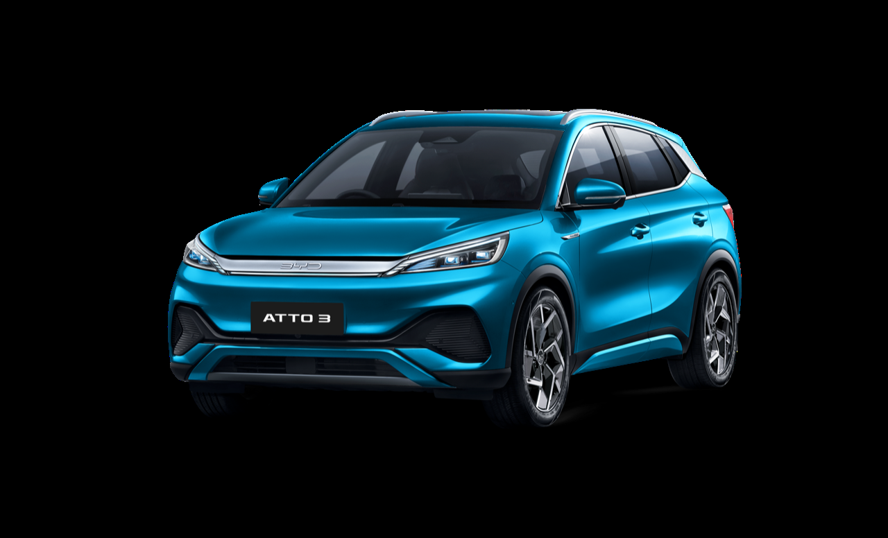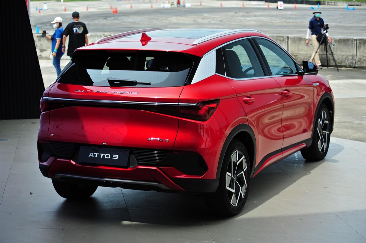 BYD ATTO 3 ครอสโอเวอร์ 5 ประตู 5 ที่นั่ง รูปลักษณ์ปราดเปรียว เน้นความลู่ลม พร้อมการตกแต่งภายในแปลกใหม่ สไตล์ Sporty & Rhythmic Design คำนึงถึงความสะดวกของผู้ขับ ระบบกักเก็บพลังงานไฟฟ้า BYD Blade Battery (LFP) เฉพาะแบรนด์ BYD ความจุแบตเตอรี่ 60.48 กิโลวัตต์ต่อชั่วโมง ให้กำลังสูงสุด 150 กิโลวัตต์ หรือ 201 แรงม้า แรงบิดสูงสุด 310 นิวตันเมตร ระยะทางวิ่งเมื่อชาร์จเต็มประมาณ 480 กิโลเมตร อัตราเร่ง 0-100 กิโลเมตร/ชั่วโมง ใน 7.3 วินาที ระบบบังคับเลี้ยว พวงมาลัยไฟฟ้า Electric Power Assisted Steering (EPAS) ช่วงล่างด้านหน้า แมคเฟอร์สันสตรัท สปริง โช้คอัพ เหล็กกันโคลง ระบบกันสะเทือนหลังแบบ มัลติ-ลิงก์ ให้ความ ระบบเบรกด้านหน้าดิสก์เบรกแบบมีช่องระบายความร้อน ระบบชาร์จพลังงานไฟฟ้า รองรับหัวชาร์จ แบบ AC Type 2 และแบบ DC - CCS 2 สูงสุด 80kW มีระบบ V2L (Vehicle To Load) จ่ายไฟฟ้าได้สูงสุด 2.2 kW พร้อมระบบการดึงพลังงานจากระบบเบรกกลับมาใช้ใหม่ (Regenerative braking)