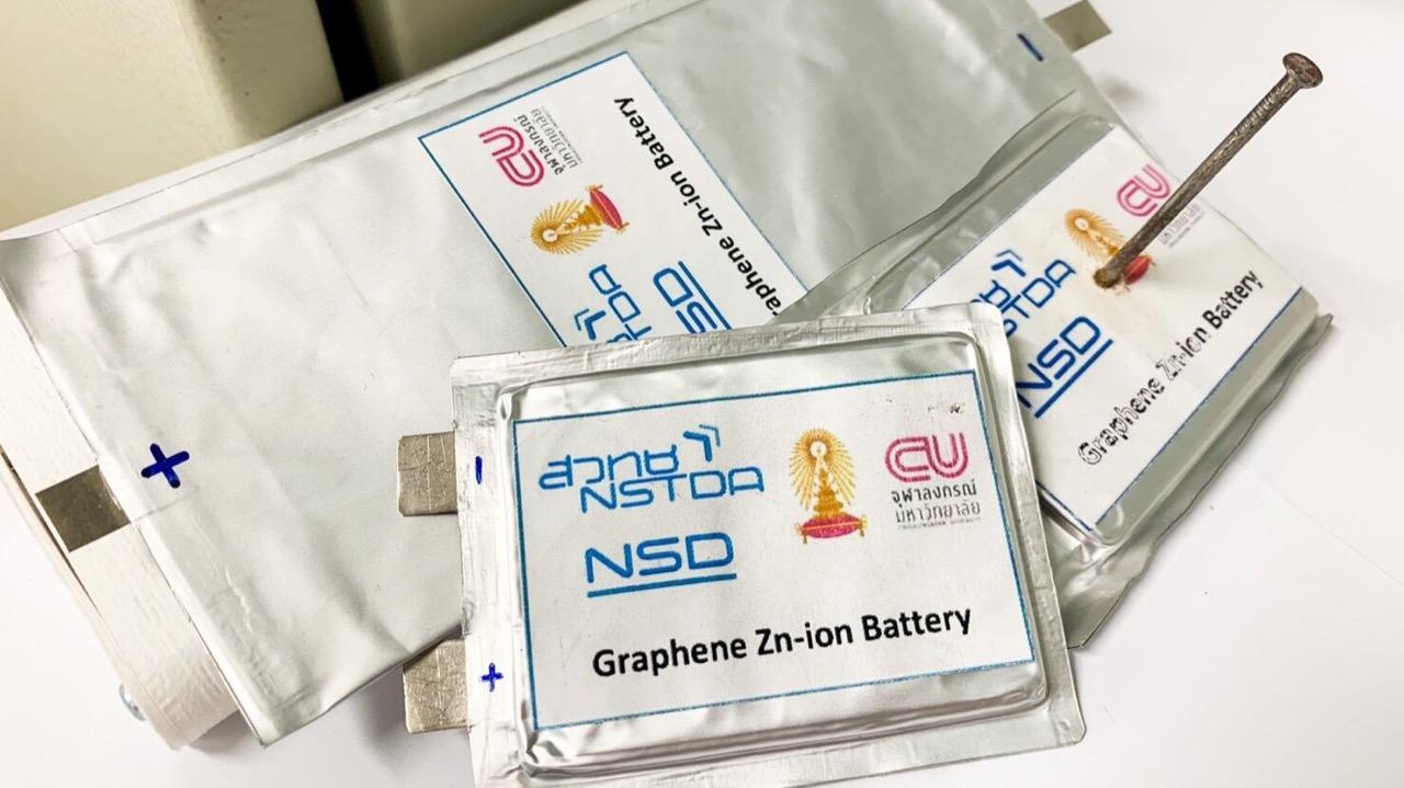 “แต่สำหรับแบตเตอรี่สังกะสีไอออนที่ทีมวิจัยร่วมกันพัฒนาว่า ได้นำเทคโนโลยีกราฟีนเข้ามาช่วยเพิ่มประสิทธิภาพการเก็บประจุของแบตเตอรี่ ซึ่งแบตเตอรี่สังกะสีไอออนมีค่าการเก็บประจุสูงถึง 200-220 mAh/g และมีค่าความหนาแน่นพลังงานอยู่ในช่วง 200-250 Wh/kg ให้ค่าแรงดันได้ 1.2–1.4 โวลต์ สามารถใช้งานได้ยาวนานกว่า 2,000 รอบ มีประสิทธิภาพด้านความหนาแน่นพลังงานสูงกว่าแบตเตอรี่ตะกั่วกรด และสามารถเทียบเคียงกับแบตเตอรี่ลิเทียมไอออนบางชนิดได้”
