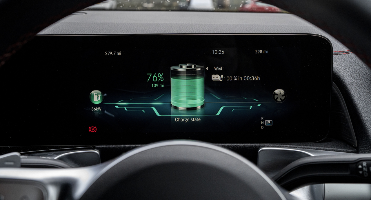 EQB 350 ใช้แบตเตอรี่ขนาด 66.5 -70.5 กิโลวัตต์ชั่วโมง ติดตั้งอยู่ใต้พื้นรถ แต่ช่วงของแบตเตอรี่จะแตกต่างกันไป ขึ้นอยู่กับรุ่นที่ Mercedes-Benz Thailand นำเข้ามาขาย (หรือประกอบในประเทศ) EQB 350 ที่ทรงพลัง ทำระยะทางได้ 415 กิโลเมตร ต่อการชาร์จหนึ่งครั้ง แต่ EQB 300 และ EQB 250+ ทำระยะทางได้ไกลกว่าเล็กน้อย คุณสามารถชาร์จ EQB ด้วยไฟฟ้าภายในบ้าน แต่สายไฟที่บ้านควรมีขนาดใหญ่กว่าปกติ เพื่อป้องกันอันตรายจากความร้อนที่เกิดขึ้นระหว่างระบบชาร์จดึงกระแสไฟเข้าแบตฯ การเชื่อมต่อระดับ 2 ที่สถานีชาร์จเร็ว DC ขนาด 100kWh Mercedes อ้างว่า การชาร์จด้วยไฟกระแสตรง (ชาร์จเร็ว) จาก 10 ถึง 80 เปอร์เซ็นต์ ในเวลาประมาณ 30 นาที