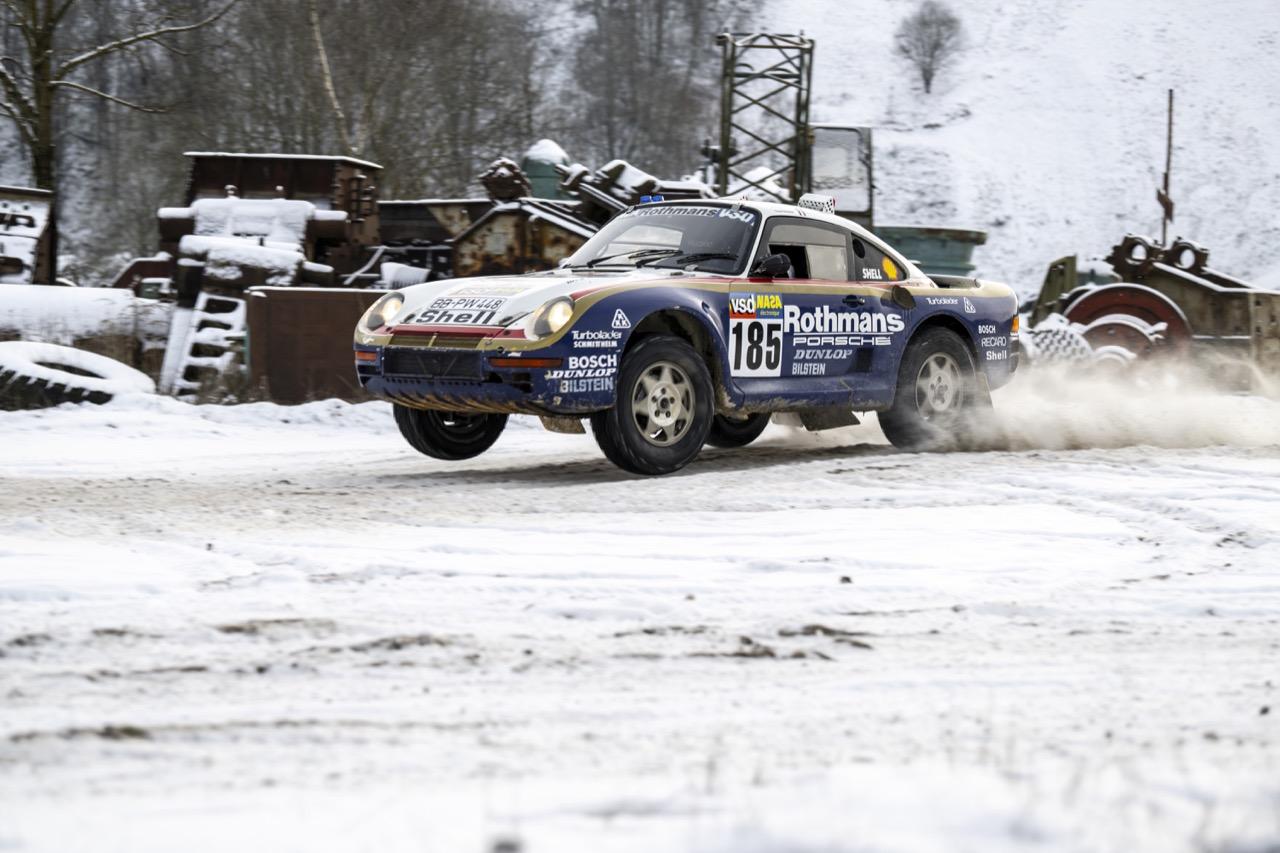 ทศวรรษ 1980 ทีม Porsche ใช้เวลา 2 ปีในการปรับแต่ง Porsche 959 ให้กลายสภาพเป็นรถแข่งแรลลี่ วิศวกรเสริมความแข็งแรงให้แก่ช่วงล่างด้านหน้าด้วยโช้คอัพคู่ รวมทั้งติดตั้งยางรถยนต์แบบ all-terrain ในกรณีที่ขับขี่บนเส้นทางที่ไม่ต้องพึ่งพาระบบขับเคลื่อน 4 ล้อ all-wheel drive เฟืองท้ายควบคุมด้วย electro-hydraulically รับหน้าที่กระจายกำลังขับเคลื่อนระหว่างเพลาขับหน้า และเพลาขับหลัง ผลลัพธ์คือ 959 คันนี้สามารถทำความเร็วสูงสุดได้ถึง 210 กิโลเมตรต่อชั่วโมง Peter Falk ผู้อำนวยการแผนก Racing นึกย้อนไปถึงการแข่งขันแรลลี่ครั้งแรก ในปี 1984 ด้วยรถแข่ง Porsche 953 และหลังจากนั้น 2 ปีต่อมา ด้วยรถแข่ง Porsche 959 Paris-Dakar
