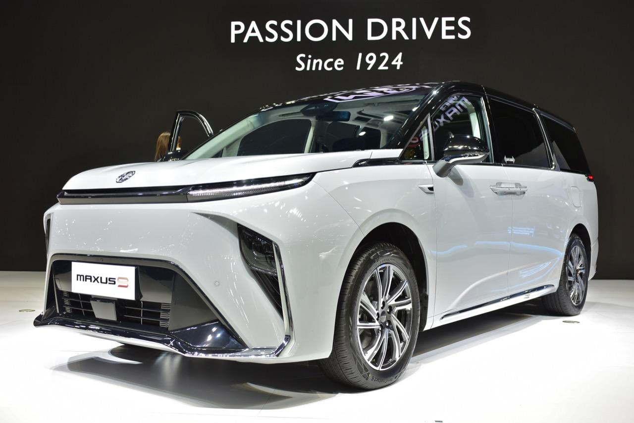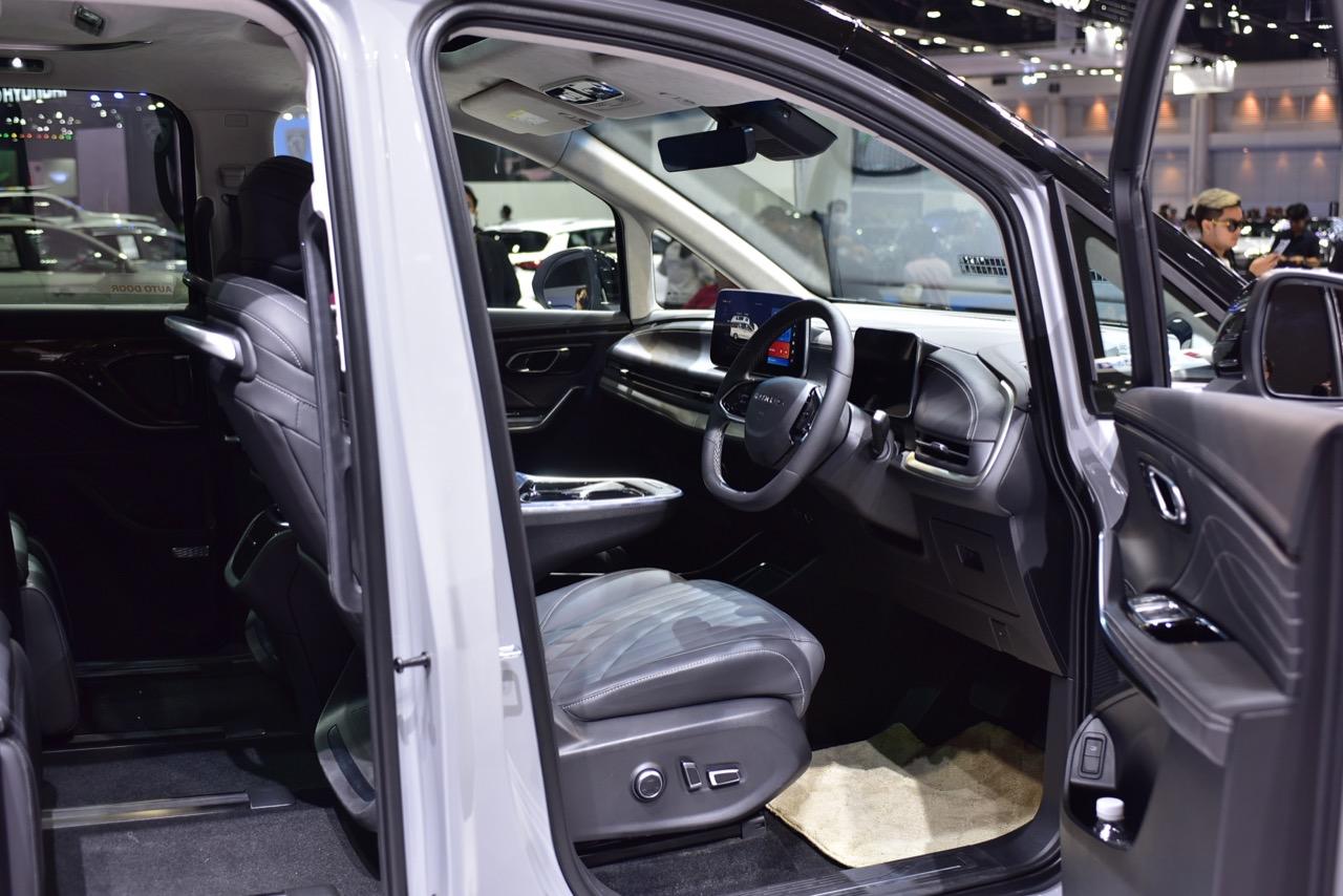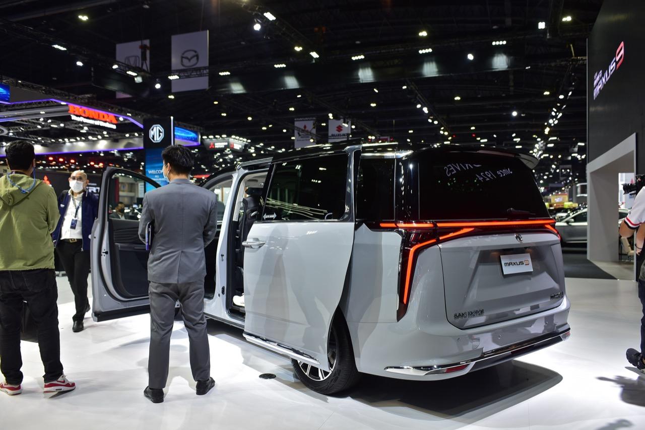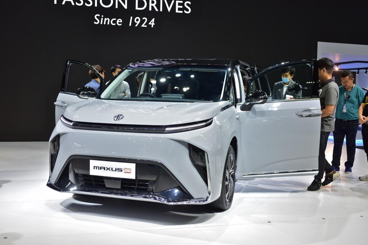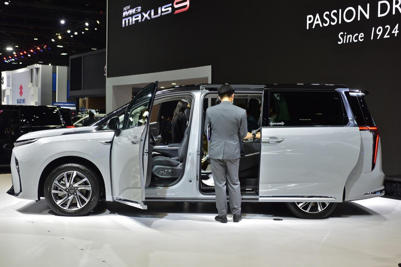 ภายในบูธของ MG ที่งานมอเตอร์โชว์ มีการเปิดตัว รถตู้สุดหรูพลังงานไฟฟ้า MG MAXUS 9 รถลักซ์ชัวรี MPV ขับเคลื่อนด้วยพลังงานไฟฟ้า 100% แบบ 7 ที่นั่ง เป็นรถยนต์ MPV ของแบรนด์ MG ที่มีตำแหน่งพวงมาลัยอยู่ด้านขวาคันแรกของประเทศไทยและอาเซียน MG MAXUS 9 เปิดประสบการณ์อีวีสุดหรู ฟังก์ชันและฟีเจอร์ล้ำสมัย งานดีไซน์ที่เน้นความหรูหรามีระดับ สำหรับนั่งโดยสารแบบสบายๆ สไตล์ผู้บริหารระดับสูง หลังคา Dual Panoramic Sunroof หลังคาผืนกระจกขนาดใหญ่ และมีความยาวไปจนถึงด้านหลัง ทำให้ห้องโดยสารโปร่งโล่ง