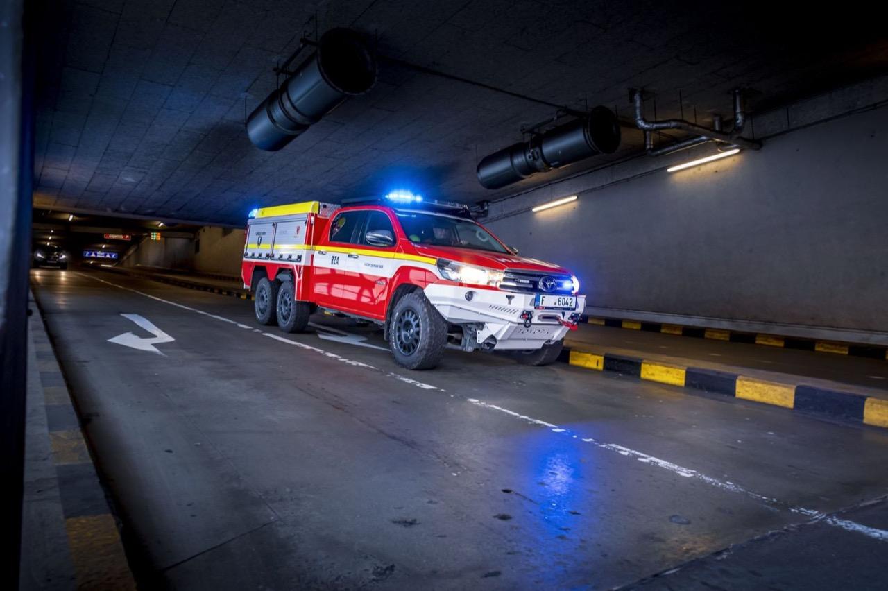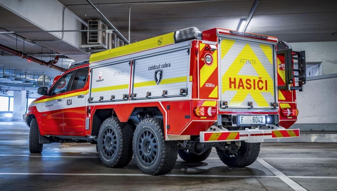 Toyota Hilux REVO Hiload 6x6 ติดตั้งระบบ ColdCut Cobra ซึ่งใช้ 'สารขัดที่ผสมอยู่ในน้ำ' ฉีดพ่นผ่านแรงดันของปั๊มที่สูงมาก เพื่อเจาะผ่านพื้นรถที่ระดับแรงดัน 300 บาร์ และเข้าไปที่ส่วนของแบตเตอรี่ในยานยนต์ EV วิธีนี้ทำให้สามารถดับไฟที่กำลังลุกไหม้ได้ภายใน 10 นาที โดยใช้น้ำน้อยกว่าปริมาณน้ำในอ่างอาบน้ำไซส์มาตรฐาน