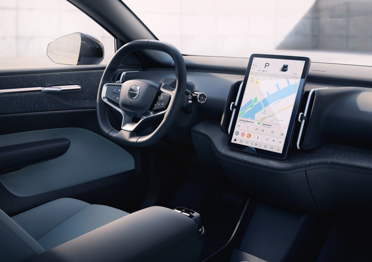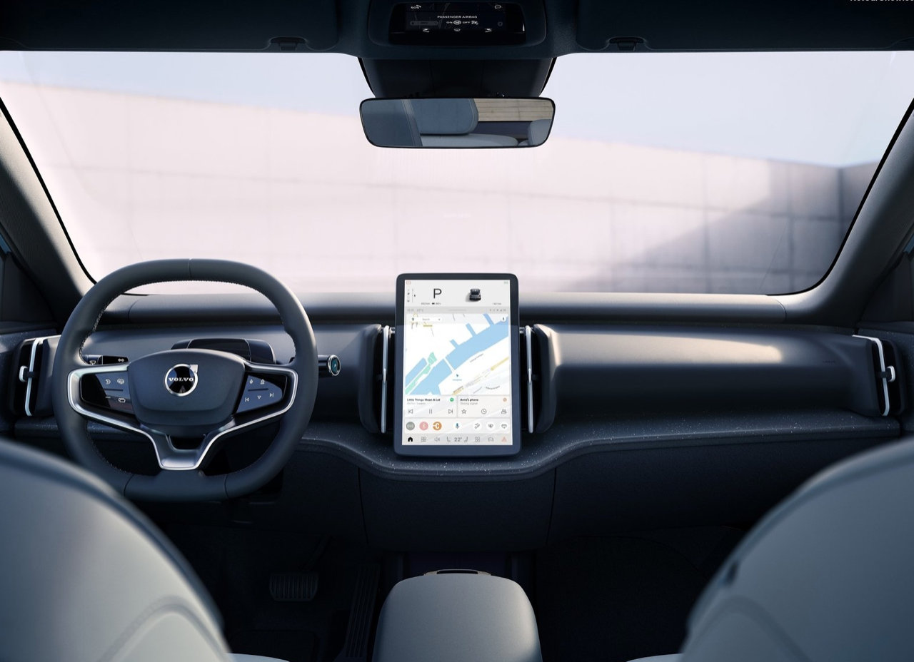 การตกแต่งภายในแบบคลาสสิกของ Volvo พร้อมความรู้สึกโปร่งโล่งและสะอาดตาใน Cockpit แดชบอร์ดตรงกลางมีระบบสาระบันเทิงด้วยจอมอนิเตอร์แนวตั้งขนาดใหญ่ ใช้ซอฟต์แวร์ก้าวหน้าของ Google ในการสั่งงาน ที่วางแขนที่ดูเทอะทะแบบลอยตัว รายละเอียดบางตำแหน่งที่เน้นความประณีต รวมถึงการใช้แถบด้านข้าง ซึ่งไม่จำเป็นต้องใช้ลำโพงที่ประตู โทนสีภายในห้องโดยสารปรุงแต่งในสไตล์เคร่งขรึม ด้วยชุดวัสดุที่ใช้เส้นใยเดนิมรีไซเคิล