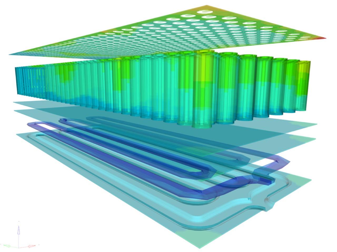 เมื่อพิจารณาเส้นทางการนำความร้อนจากเซลล์แบตเตอรี่ไปยังแผ่นระบายความร้อน จะมีอินเทอร์เฟซซึ่งหมายถึงความต้านทานจำนวนมาก แต่ละอินเทอร์เฟซมีความต้านทานต่อการนำความร้อน นอกจากนั้น ยังมีมวลความร้อน/ความจุจำนวนมากที่ต้องจัดการอีกด้วย ดูเหมือนว่าเส้นทางการนำความร้อนของระบบหล่อเย็นแบตฯ คือ: แผ่นทำความเย็น > กล่องหุ้มแบตเตอรี่ > โมดูลแบตเตอรี่ > เซลล์แบตเตอรี่ ระหว่างแผ่นระบายความร้อน กล่องหุ้มแบตเตอรี่ และโมดูลแบตเตอรี่ มีสารนำความร้อน หรือแผ่นช่องว่างระบายความร้อนซึ่งสร้างส่วนต่อประสานเพิ่มเติม จำเป็นต้องใช้แผ่นปิดช่องว่าง เนื่องจากพื้นผิวทั้งหมดนั้นไม่เรียบสนิท จำเป็นต้องใช้แผ่นปิดช่องว่างเพื่อกำจัดความไม่สมบูรณ์ และเพิ่มพื้นที่ผิวสัมผัส Porsche ใช้เซลล์แบบกระเป๋าของ LG ภายในโมดูล แผ่นระบายความร้อนจะควบคุมอุณหภูมิของแบตเตอรี่ ซึ่งทำหน้าที่เป็นอ่างระบายความร้อนขนาดใหญ่สำหรับโมดูลแบตเตอรี่ ในกรณีนี้ ช่วยป้องกันไม่ให้เซลล์แบตเตอรี่มีอุณหภูมิเพิ่มขึ้นเร็วเกินไป