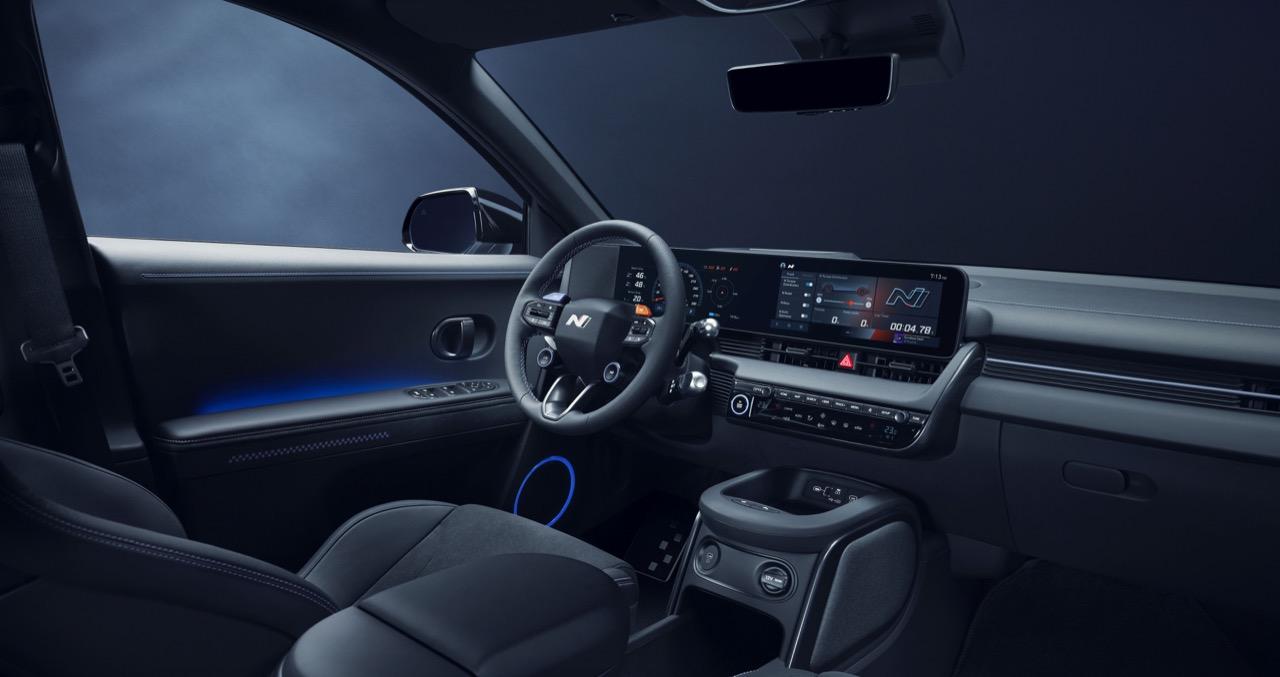 การออกแบบภายในโทนสีดำล้วน แซมด้วยสีน้ำเงิน Performance Blue ซึ่งทำให้รถดูน่ารักขึ้น พวงมาลัยแบบสามก้าน เป็นการเปลี่ยนแปลงที่น่ายินดีสำหรับลูกค้าที่ชอบพวงมาลัยแบบสปอร์ต กับความรู้สึกแบบดั้งเดิมที่มีปุ่มควบคุมให้มาเหมือนเดิมซึ่งใช้งานง่ายกว่าระบบสัมผัส คอนโซลกลางมีที่วางแขนแบบเลื่อนได้ คนขับและผู้โดยสารด้านหน้านั่งบนเบาะบัคเก็ตซีทของแบรนด์ N ซึ่งถูกปรับให้ต่ำลงอีก 20 มิลลิเมตร พร้อมพนักพิงศีรษะที่มีหมอนหนุนรองเสริม เบาะนั่งหุ้มด้วยผ้าผ้าโพลีอัลคันทารารีไซเคิล ทรงของเบาะได้แรงบันดาลใจจากรถแข่ง แผงขอบข้างประตูและแป้นเหยียบโลหะ ที่พักเท้าก็ทำด้วยโลหะ สื่อถึงรากเหง้าของมอเตอร์สปอร์ตจากแบรนด์ N และเพิ่มความรู้สึกน่าเข้าไปนั่งให้กับห้องโดยสาร