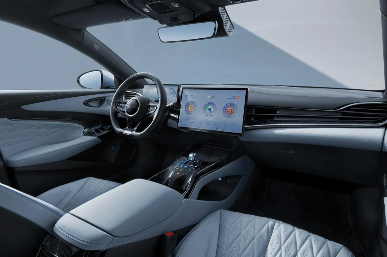 แดชบอร์ดที่โฉบเฉี่ยว ช่องแอร์กว้างและโค้งมน, จอแสดงผล W-HUD, แผงหน้าปัดดิจิทัล ขนาด 10.25 นิ้ว, คอนโซลกลางแบบสะพานเชื่อมต่อกับแดชบอร์ด กุญแจดิจิทัล NFC กาบข้างประตูตราสัญลักษณ์ BYD แท่นชาร์จโทรศัพท์ Qi และระบบเสียง Dynadash