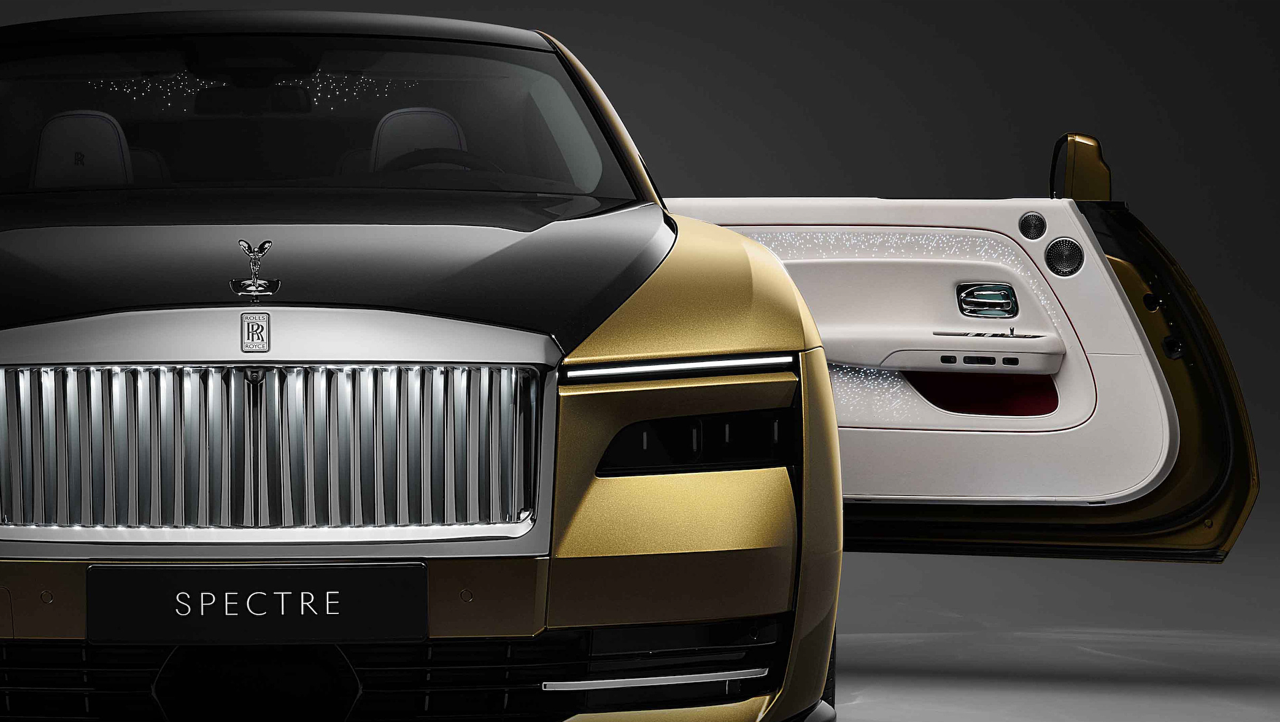 Rolls Royce Spectre กับสัดส่วนที่ลงตัวในสไตล์รถยนต์ฟาสต์แบคสองประตู สืบทอดตำนานของรถยนต์ระดับไอคอนอย่าง Rolls Royce Phantom Coupé ห้องโดยสารรังสรรค์รูปแบบตามสไตล์ของผู้ครอบครอง (Bespoke) แดชบอร์ดเรืองแสง (Illuminated fascia) ประตูดาวส่องแสงระยิบระยับ (Starlight Doors)