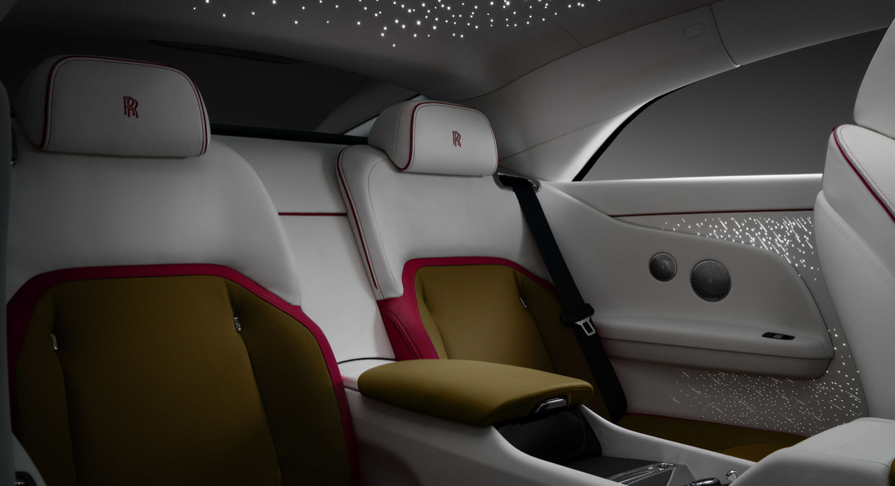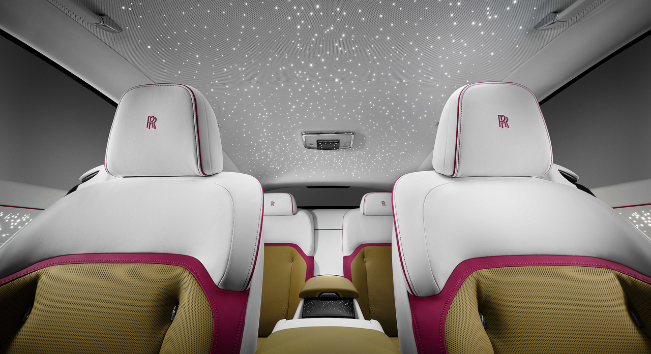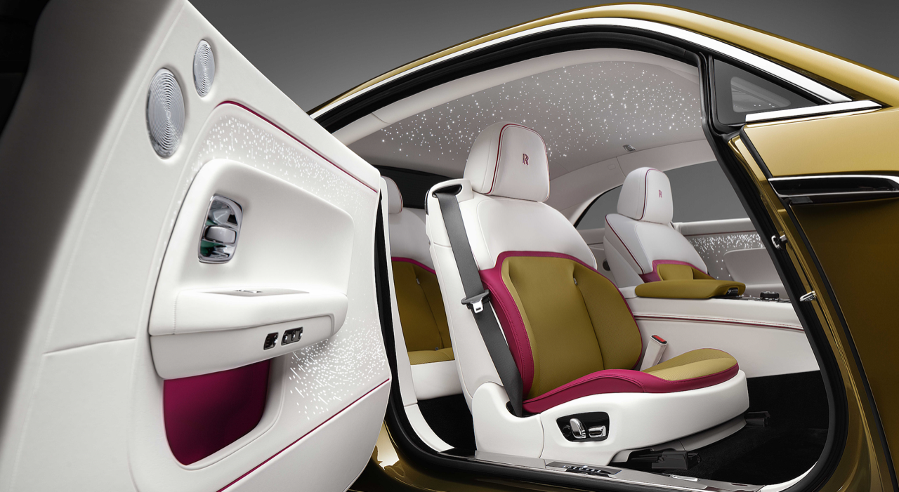 ภายในของ Rolls Royce Spectre ติดตั้งเทคโนโลยี ฟีเจอร์พิเศษแบบ Bespoke เช่น ประตูดาว (Starlight Doors) ส่องแสงอ่อนๆ เป็นประกายระยิบระยับ ผ่าน 4,796 ดวงดาว หรือ เลือกติดตั้งแผงไม้คานาเดล (Canadel panelling) ผลิตขึ้นด้วยมือจากไม้ชั้นเลิศ แดชบอร์ดเรืองแสง (Illuminated Fascia) บริเวณฝั่งผู้โดยสาร ผ่านการฉลุชื่อ Spectre ล้อมรอบด้วยประกายดาวมากกว่า 5,000 ดวง เบาะคู่หน้า เลือกสีบริเวณปีกเบาะให้เข้ากันกับบริเวณรองนั่ง หรือเลือกสีตัดกันได้ตามชอบในสไตล์เทเลอร์เมด