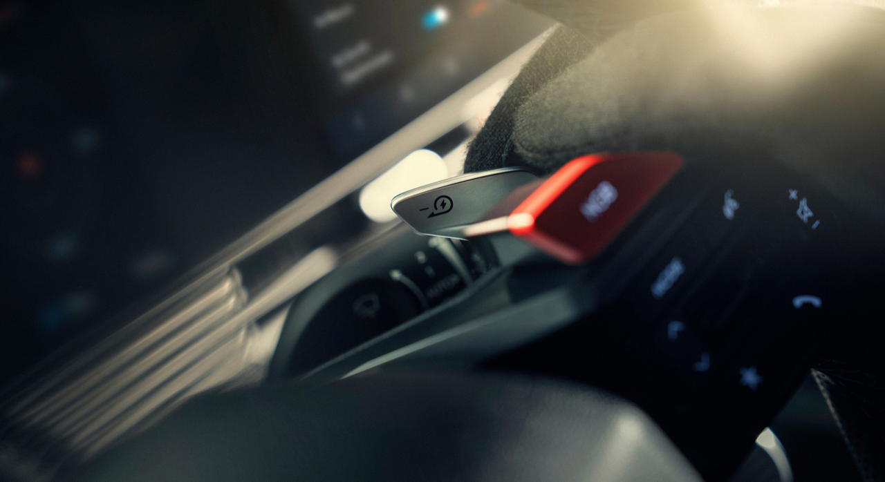 ถ้า EV เบิ้ลเครื่องได้ยังแปลกไม่พอ ลองนี่ครับ แพดเดิลชิฟต์! ซึ่งในยามปกติ มันจะทำหน้าที่ปรับการหน่วงของระบบ Regenerative Braking แต่ถ้าเข้าโหมด “เสมือนเครื่องเบนซินซิ่ง” เวลาคุณกดคันเร่ง แล้วกดแป้นเปลี่ยนเกียร์ สมองกลของรถจะสั่งให้มอเตอร์มีการหน่วงสลับกระชาก เหมือนเวลาคุณขับรถซิ่งเครื่องเบนซินจริงๆ เลยนั่น ทั้งขาขึ้นและขาลงเกียร์ ซึ่งจุดนี้ไม่ได้ทำให้รถไวขึ้นนะครับ เพราะเมื่อคุณปรับรถให้เป็นโหมดที่สามารถสร้างความเร็วได้ดีที่สุด สมองกลของรถจะยกเลิกไอ้โหมดเกียร์เก๊นี่ไป มันก็จะกระทืบแล้วไหลขึ้นเรื่อยๆ ต่อเนื่องอย่างที่รถ EV ควรเป็น