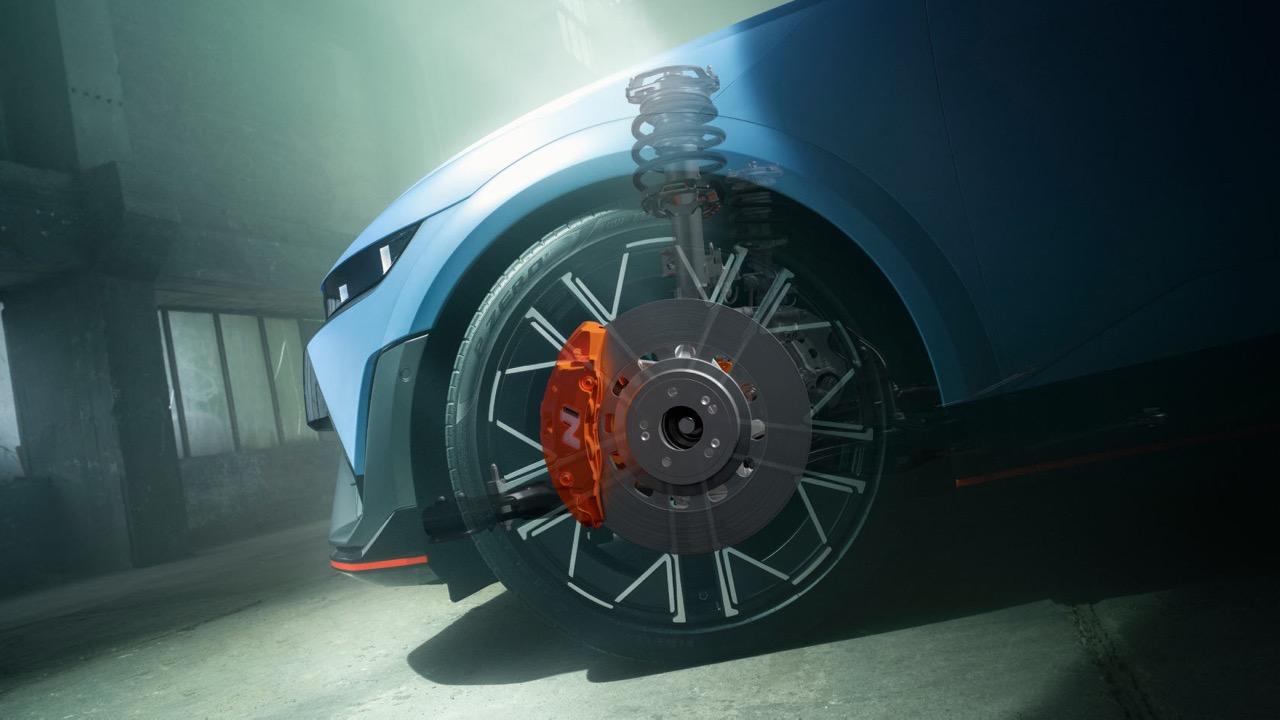 ส่วนในด้านตัวถังนั้น ถ้าคุณมองว่า 5 N คือรุ่น 5 ธรรมดามาใส่มอเตอร์แรงๆ ก็คงผิดถนัดครับ Hyundai ตกแต่ง 5 N ด้วยแอโรพาร์ทที่แตกต่าง ไม่ใช่แค่หวังผลในเรื่องสไตล์ แต่วิศวกรปรับแก้หลายต่อหลายครั้งเพื่อให้แต่ละพาร์ตมีผลต่อการระบายความร้อนส่วนต่างๆ อย่างจริงจัง ซับเฟรม จุดยึดช่วงล่าง แตกต่างจาก IONIQ 5 ธรรมดา ยางรองมอเตอร์ ยางยึดแบตเตอรี่ จุดยึดต่างๆ เป็นแบบ Heavy Duty จุดเชื่อมบนตัวถัง ก็มีจุด Spot เพิ่มจากรุ่นธรรมดาอีก 42 จุด และเพิ่มจุดที่เชื่อมต่อกันด้วยกาวตราช้างเหยียบหมีเหยียบหมา (กาวอุตสาหกรรมที่เหนียวโคตรๆ) มากกว่ารุ่นเดิมเป็นแนวยาว 2.1 เมตร ทั้งหมดนี้ต้องทำเพื่อให้ตัวถังรถสามารถต้านทานแรงขณะออกตัว เบรก หรือเข้าโค้งอย่างรุนแรงได้ดีขึ้น ให้คุณมองว่าเทียบ IONIQ 5 กับ 5 N ก็เหมือนคุณเทียบ Mitsubishi Lancer 1.8 CVT กับ Lancer Evolution 8MR นั่นล่ะครับ ความต่างมันมีประมาณนั้น