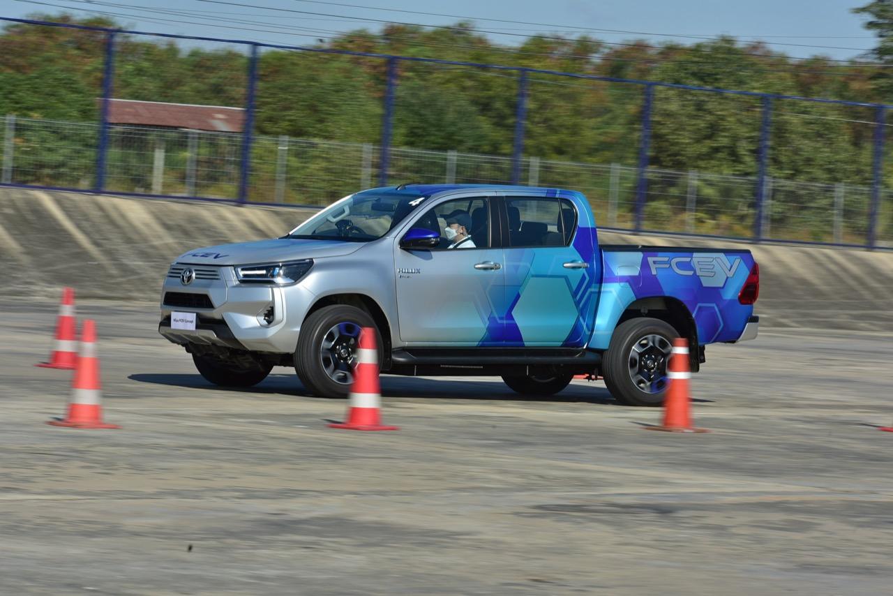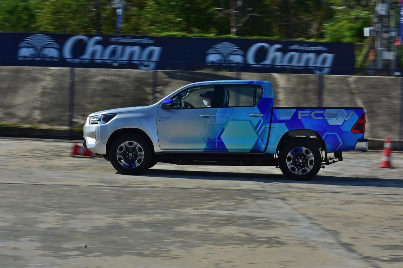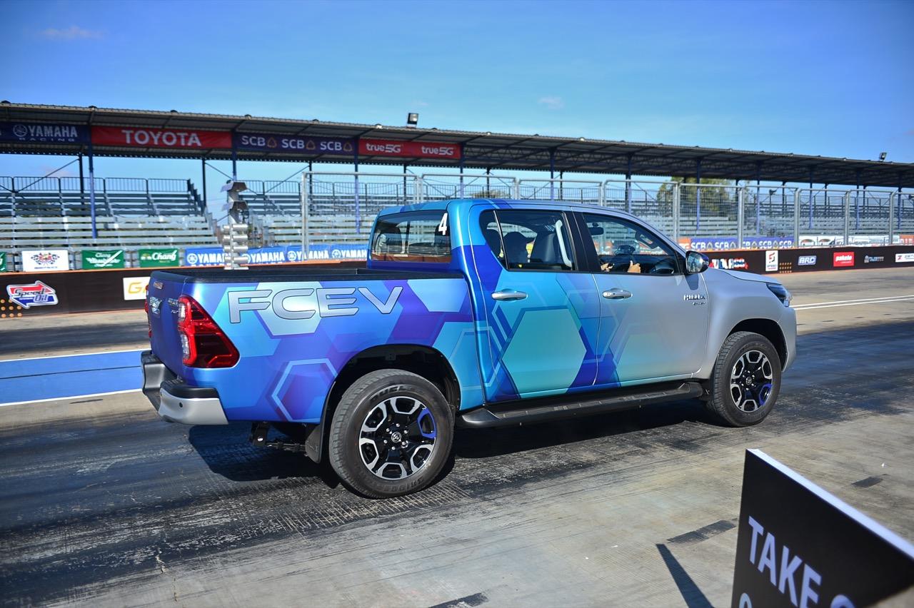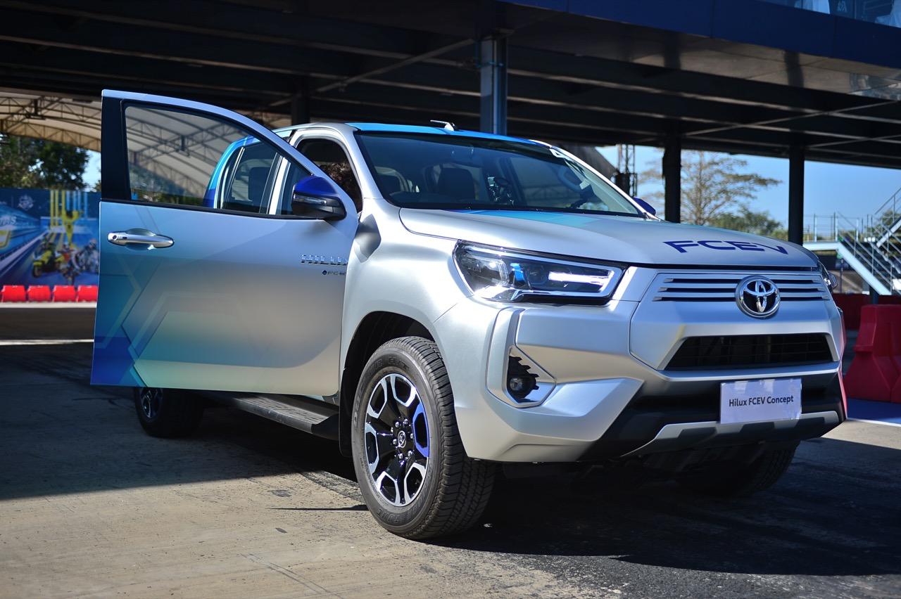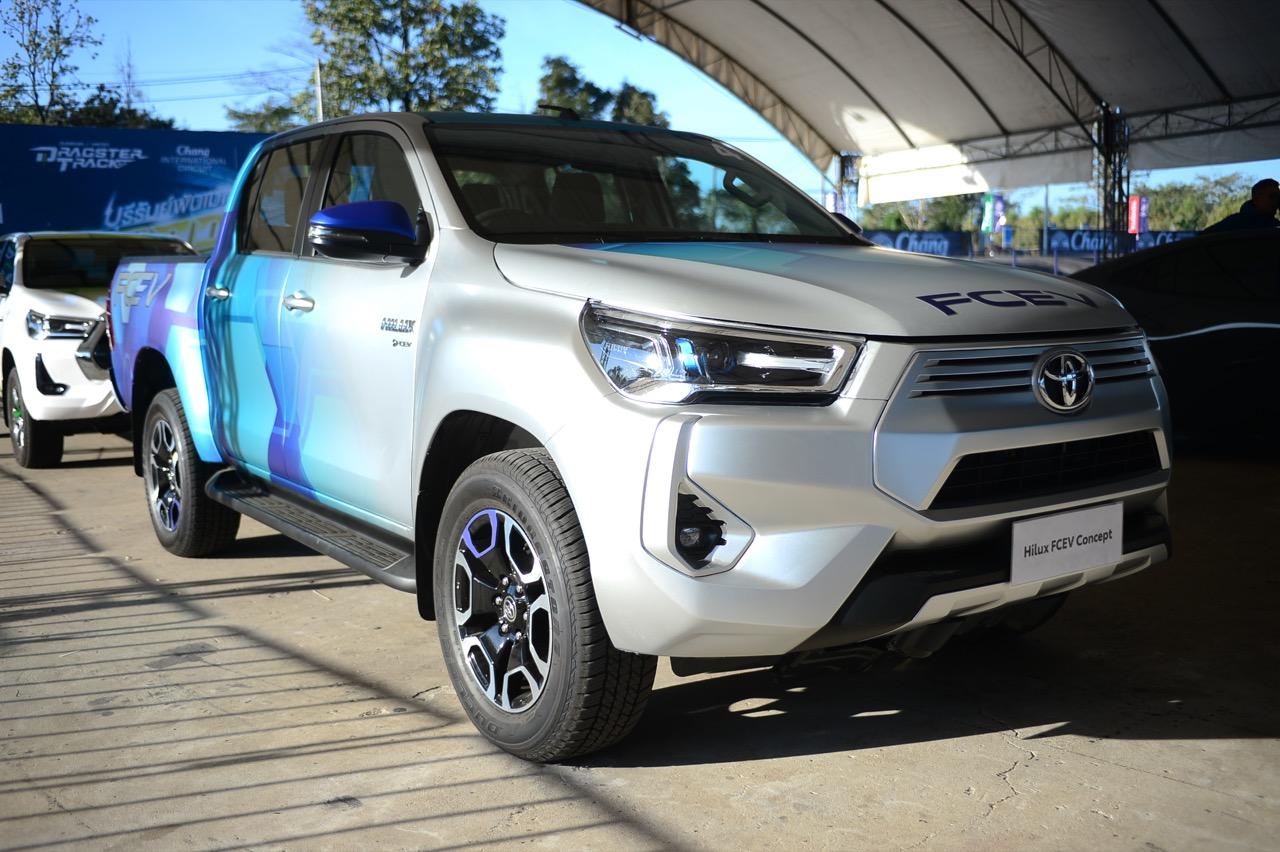 รถต้นแบบพลังงานไฮโดรเจน Toyota Hilux ขับเคลื่อนด้วยเซลล์เชื้อเพลิงไฮโดรเจน แสดงให้เห็นว่า Toyota ผู้ผลิตรถยนต์รายใหญ่ที่สุดของโลกจริงจังกับการนำพลังงานไฟฟ้ามาใช้ในกระบะ Hilux BEV และพลังงานไฮโดรเจนในรถยนต์ต้นแบบ Hilux FCEV ขุมพลังไฮโดรเจนในรถเพื่อการพาณิชย์ขนาดเล็ก Toyota Hilux FCEV Concept กระบะที่ขับเคลื่อนด้วยระบบขับเคลื่อนไฮโดรเจน ประกอบด้วยระบบส่งกำลังของ Toyota Mirai ที่ดัดแปลงพิเศษเพื่อนำไฮโดรเจนแท็งค์มาวางลงในโครงสร้างของกระบะ Hilux REVO มีถังเชื้อเพลิงแรงดันสูง 3 ถัง พร้อมระบบเปลี่ยนแปลงไฮโดรเจนให้กลายเป็นพลังงานไฟฟ้า เพื่อป้อนให้กับมอเตอร์ขับเคลื่อน Hilux FCEV Concept ให้ระยะการขับขี่ตามทฤษฎีมากกว่า 587 กม. แบตเตอรี่ถูกซ่อนไว้ในถาดใต้พื้นกระบะเพื่อไม่ให้ส่งผลกระทบกับพื้นที่ห้องโดยสาร แน่นอนว่าระบบขับเคลื่อนไฮโดรเจนราคาแพง กลายเป็นอุปสรรคต่อความสามารถในการบรรทุกของของ HiLux แน่นอนว่านี่เป็นเพียงรถยนต์ต้นแบบที่เชิญสื่อมาขับในสนามช้างแค่ช่วงสั้นๆ การพัฒนาระบบขับเคลื่อนไฮโดรเจนเพื่อปรับใช้ในกระบะ Hilux รุ่นต่อไป ก่อนที่ FCEV จะเข้าสู่สายการผลิตในอนาคต มีต้นแบบอีก 9 คันที่จะสร้างขึ้นเพื่อทดสอบและเก็บข้อมูลจนถึงสิ้นปี 2023 โครงสร้างที่ใช้ร่วมกับกระบะ Hilux REVO เน้นประสิทธิภาพด้านออฟโรดเช่นเดียวกับกระบะที่ใช้เครื่องยนต์สันดาปภายใน