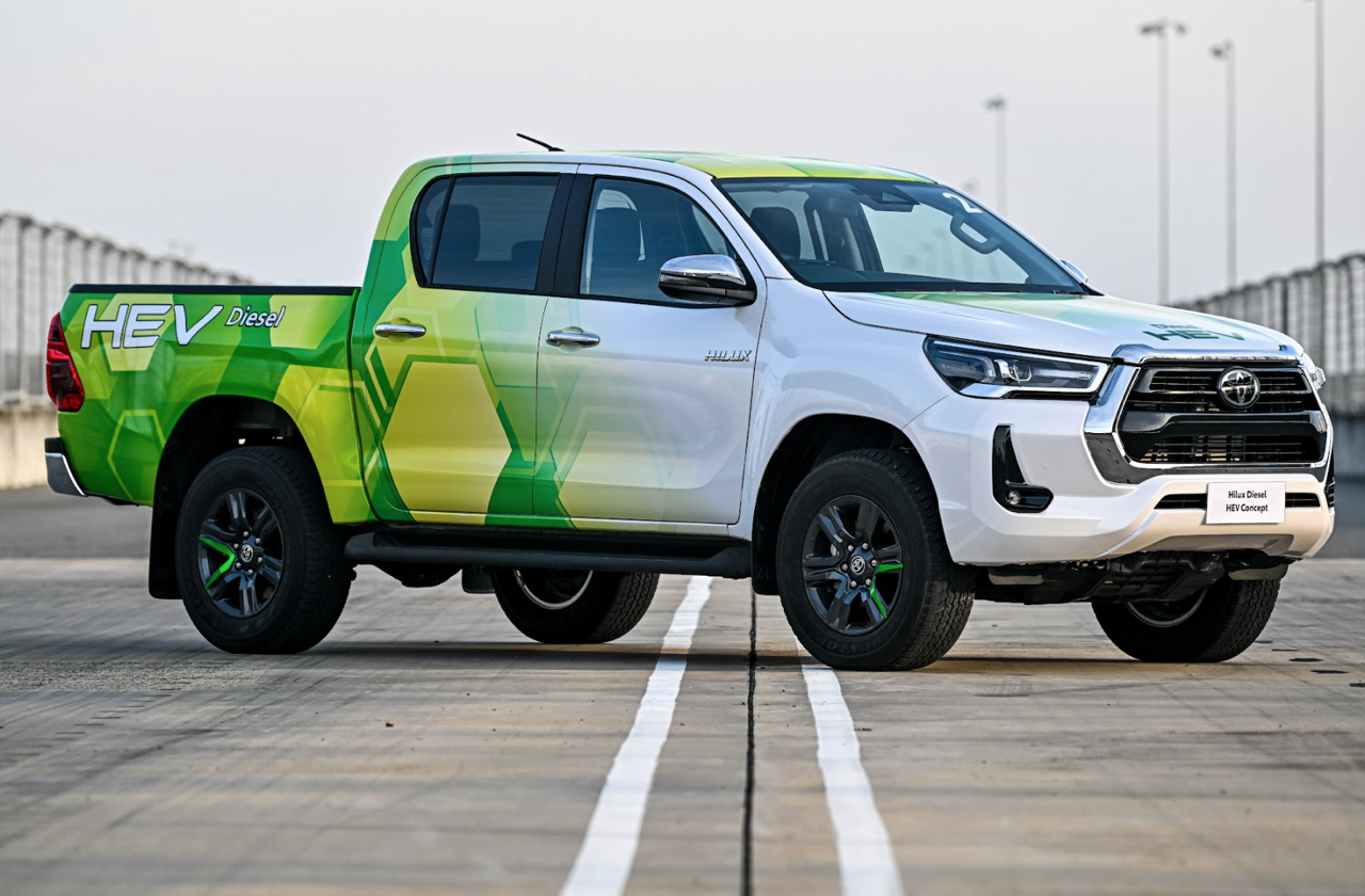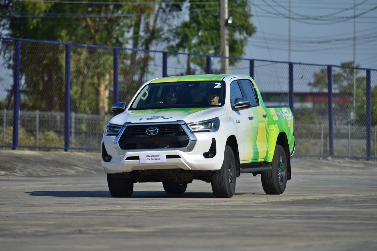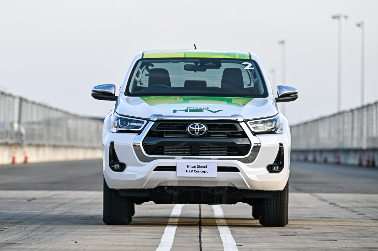 Toyota แจ้งว่า อย่างไรก็ตาม เครื่องยนต์สันดาปภายในของรถยนต์กระบะ รวมถึงรถยนต์รูปแบบอื่นๆ ก็จะยังคงมีอยู่ต่อไป ในอนาคต Toyota จะทำให้ราคาของรถกระบะจับต้องได้ง่ายขึ้น สำหรับรถกระบะต้นแบบ Hilux Diesel Mild Hybrid 48V เพื่อยังคงอัตราการตอบสนองของรถกระบะเครื่องยนต์ดีเซล 2.8 ลิตร ด้วยระบบไฮบริดเสริมที่ช่วยทำให้การเร่งแซงดีขึ้นและมีมลพิษลดลง โดยเน้นไปยังลูกค้าที่ใช้งานทั้งขับทำงานและขับเดินทางท่องเที่ยวทางไกล สำหรับกระบะ BEV พลังงานไฟฟ้า ในตลาดรถยนต์กระบะของไทยยังไม่ได้รับความนิยมเท่าที่ควร แตกต่างจากออสเตรเลียที่กระบะไฟฟ้าได้รับความสนใจเพิ่มมากขึ้นอย่างต่อเนื่อง มีการใช้กระบะ BEV ขนส่งพนักงานเหมือนในออสเตรเลีย ส่วนกระบะ Hilux FCEV นั้น เน้นการใช้งานขนส่งระยะไกลที่ต้องบรรทุกสินค้าหรืออุปกรณ์ต่างๆ เพื่อการทำงาน เนื่องจากมีระยะทางในการวิ่งไกลกว่า ตอบโจทย์การใช้งานได้อย่างครอบคลุมมากกว่า