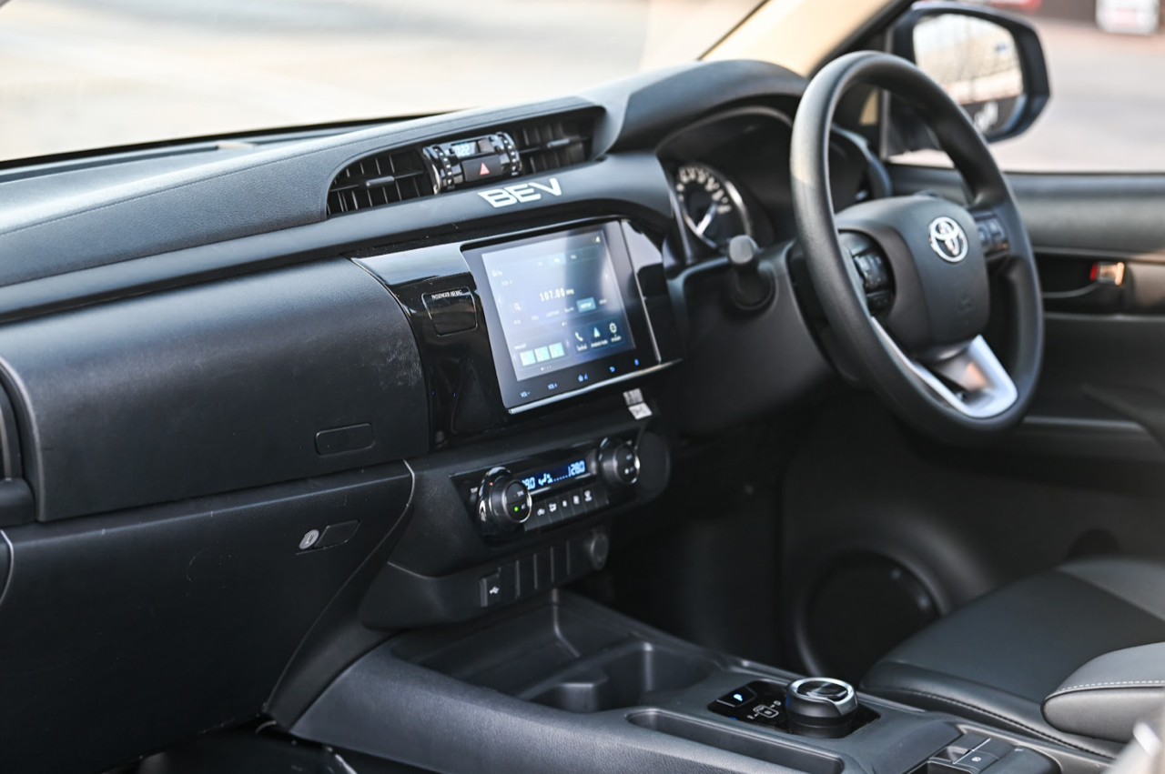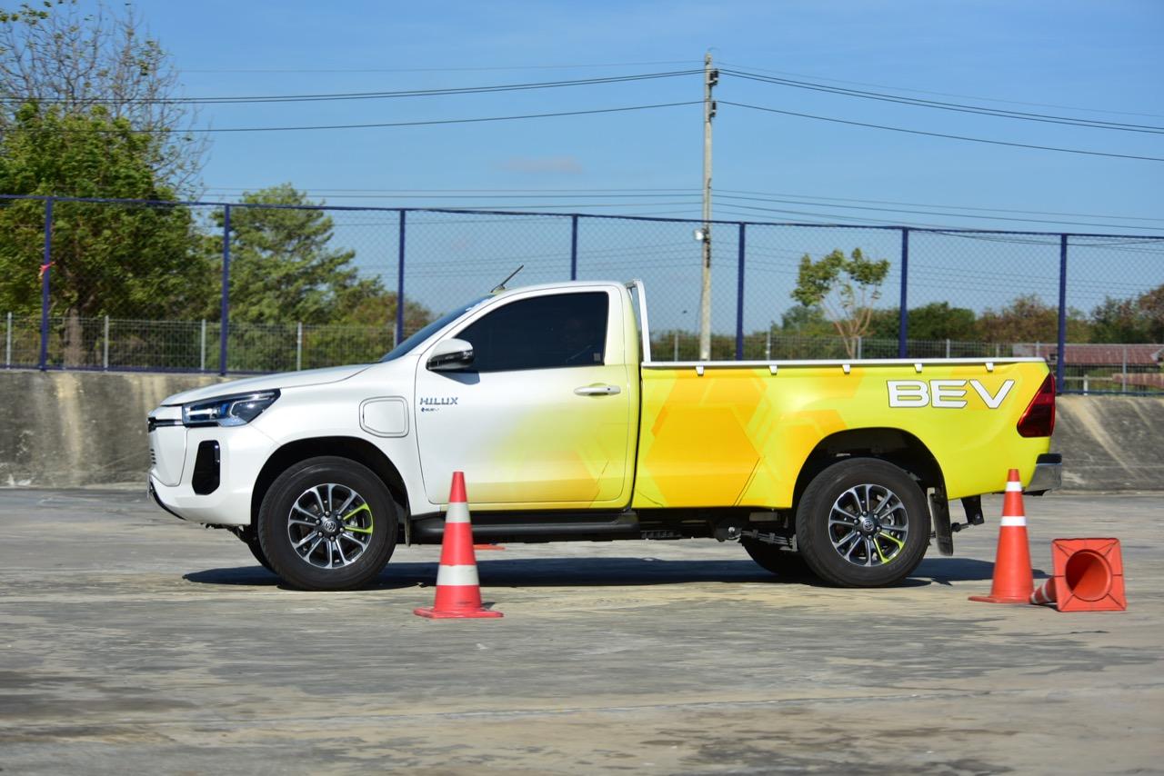 ความร่วมมือกับยักษ์ใหญ่อย่าง CP ทำให้อนาคตของรถกระบะ Toyota ดูสดใสขึ้น ล่าสุดกับรถกระบะต้นแบบแนวคิดพลังงานสะอาด Hilux BEV Concept เป็นปิกอัพต้นแบบรถกระบะไฟฟ้า BEV โดยมีพื้นฐานมาจาก Hilux Revo ตัวหัวเดี่ยว Single Cab มีการนำ Hilux REVO หัวเดี่ยวมาดัดแปลงโดยเปลี่ยนระบบขับเคลื่อน จากเครื่องยนต์ดีเซล มาเป็นมอเตอร์ไฟฟ้าที่เพลาขับหลัง แบตเตอรี่ BEV จุดชาร์จ อุปกรณ์ส่วนควบอื่นๆ แบตเตอรี่ถูกติดตั้งที่เฟรมด้านล่างของห้องโดยสาร พร้อมเฟรมกันกระแทก มอเตอร์ไฟฟ้าวางอยู่บนเพลาหลัง ขับเคลื่อนล้อหลัง ออกแบบคานแข็งใหม่ ไม่มีเพลาส่งกำลัง ช่องชาร์จไฟอยู่ที่แก้มด้านซ้ายมือของตัวรถ ยังไม่มีการระบุรายละเอียดที่ชัดเจนของมอเตอร์และแบตเตอรี่ แต่Hilux BEV Concept ทำระยะทางต่อการชาร์จไฟจนเต็มหนึ่งไกล 300 กิโลเมตร