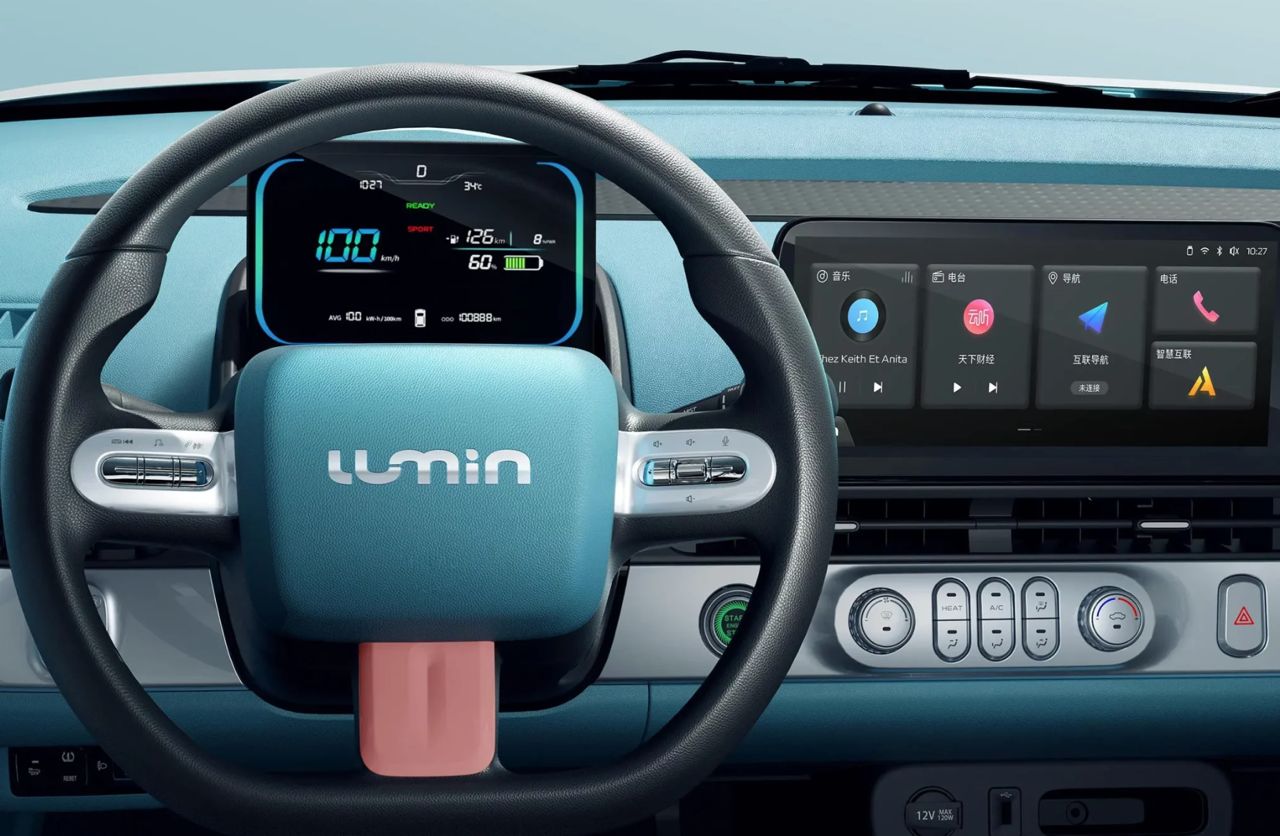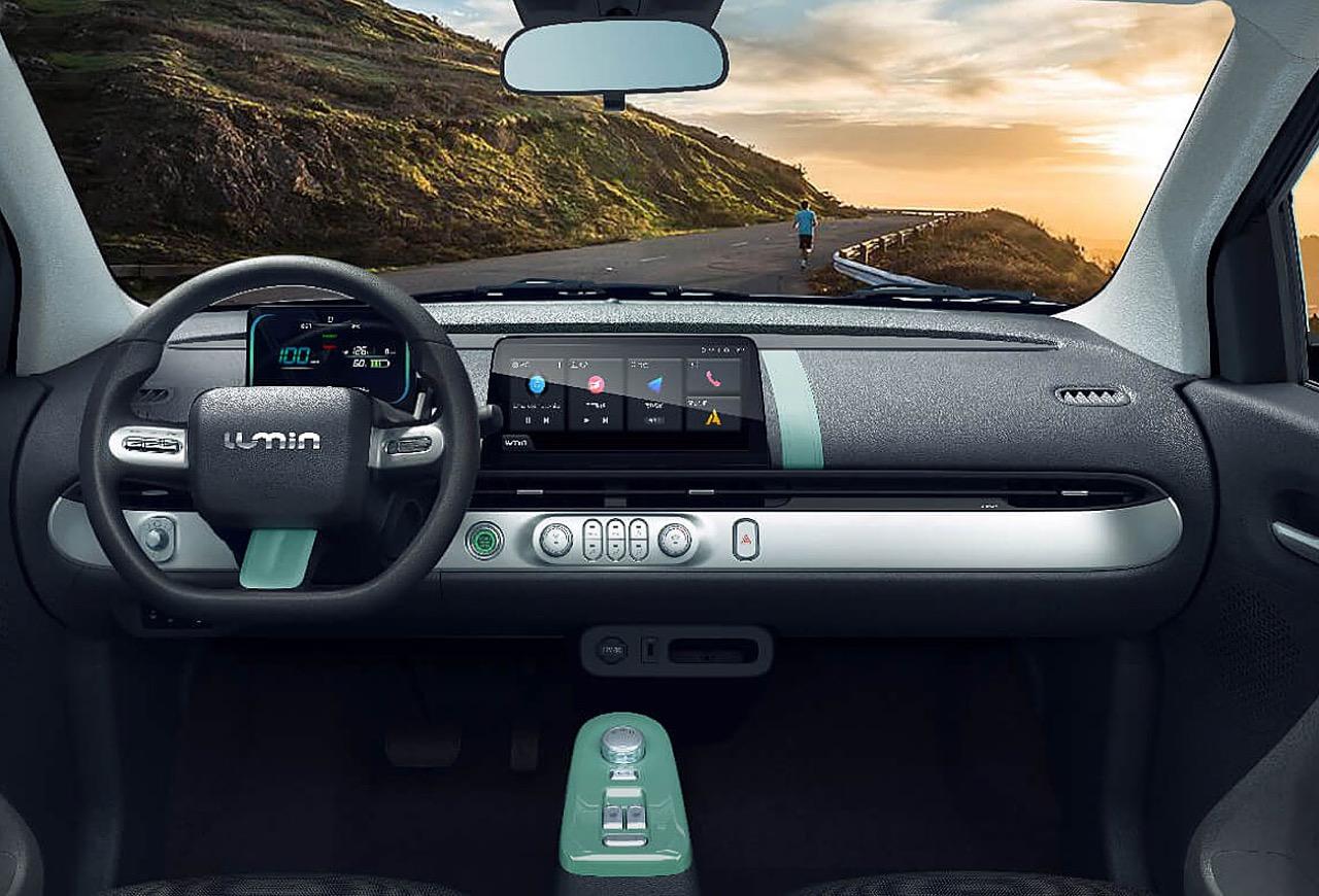 Lumin ใช้สไตล์รถแฮตช์แบ็กทรงกล่อง 3 ประตู Mini EV City Car เน้นจับตลาดวัยรุ่นด้วยหน้าตาท่าทางที่น่ารัก ไฟหน้าและไฟท้ายทรงกลม ช่องดักอากาศที่กันชนหน้า พื้นผิวตัวถังรถราบเรียบเน้นเส้นสายที่เรียบง่าย มือจับที่เปิดประตูแบบป๊อปอัป ล้ออัลลอย ขนาด 14 นิ้ว ขอบยางขนาด 165/70 R14