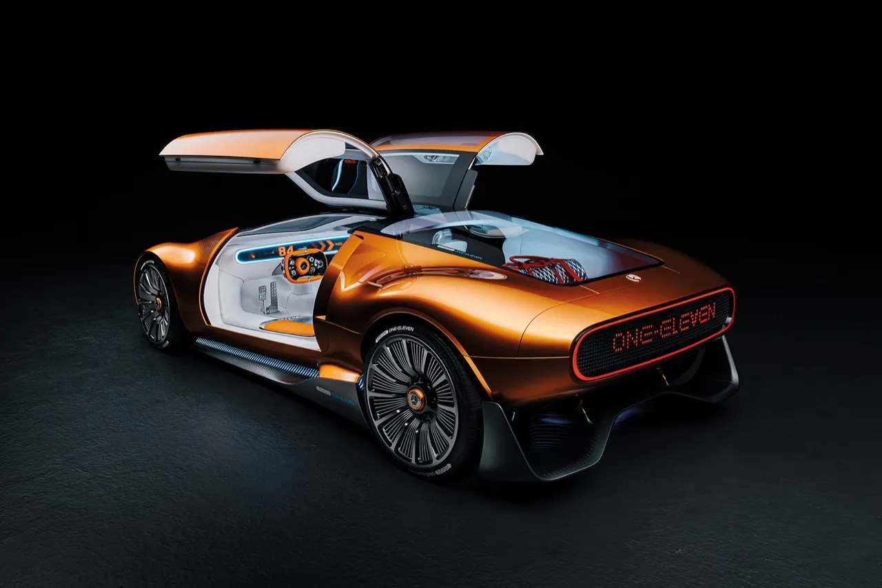 Vision One-Eleven คือการแสดงเจตจำนงของวงการอุตสาหกรรมยานยนต์ยุคใหม่ที่เปี่ยมไปด้วยพลัง แม้ว่าจะดูเป็นรถต้นแบบเครื่องยนต์วางกลางเหมือนกับ C111 รุ่นดั้งเดิม แต่ก็มีมอเตอร์ฟลักซ์ตามแนวแกนในแต่ละล้อ และชุดแบตเตอรี่ขนาดใหญ่ที่ยังอุบความจุแบตฯ เอาไว้อย่างแยบยล ด้วยเหตุนี้ Vision One-Eleven จึงเป็นความบันเทิงที่เอาไว้อวด มากกว่าจะเป็นรถยนต์ไฟฟ้าที่ใช้งานได้จริง