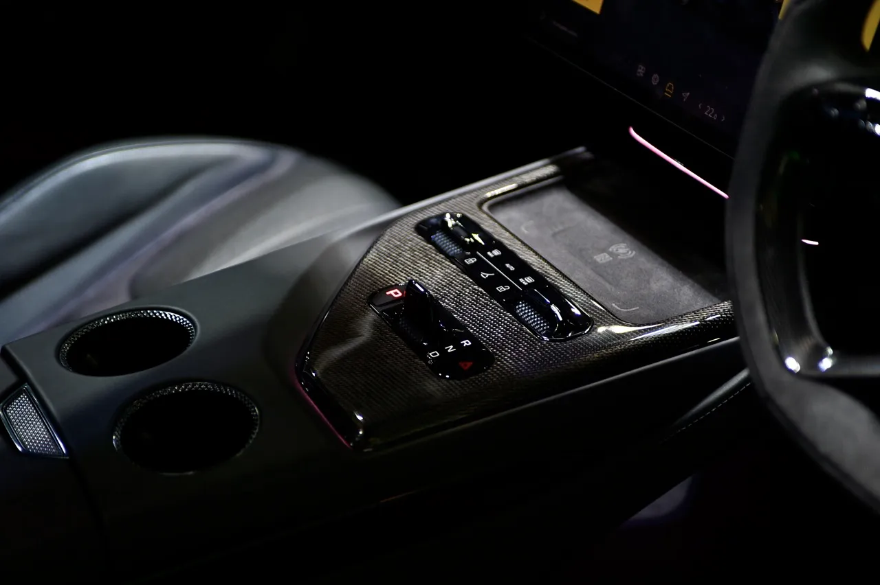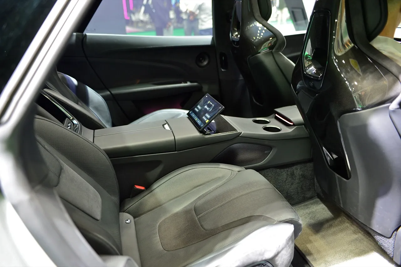 ภายใน เบาะนั่งด้านหน้าแบบคาร์บอน พวงมาลัยฐานตัดแบบรถแข่งหุ้มด้วยหนังกลับ Alcantara ผ้าหลังคาก็หุ้มด้วย Alcantara เช่นเดียวกัน ผสมผสานกับองค์ประกอบงานตกแต่งภายในสไตล์ยุโรปที่หรูหรา เบาะหลังแบบแยกส่วนแบบบักเก็ตซีส กระจกมองข้างใช้กล้องล้อมกรอบด้วยชิ้นงานคาร์บอนไฟเบอร์ (ออปชันเสริม) หน้าจอกระจกมองหลังแบบดิจิทัล และวัสดุที่มีคุณภาพสูงปรากฏอยู่ทั่วทั้งห้องโดยสาร โดยเฉพาะเบาะหลังที่ปรับเอนนอนได้พร้อมฟังก์ชันนวด